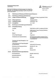 TÜV Rheinland Energy GmbH Luftreinhaltung A TÜVRheinland® Genau. Richtig. Bericht über die Durchführung von Emissionsmessungen an der Anlage HKW West - Block 1, der Volkswagen AG am Standort Wolfsburg, für die Messobjekte Seite 13 von 61 PCDD/PCDF, PCB, Schwermetalle, Benzo(a)pyren, Hg, NHs, HCI und HF, Be- richts-Nr. 936/21243572/A 2.6 2.6.1 2.6.1.1 2.6.1.2 2.6.1.3 2.6.1.4 2.6.2 2.6.2.1 2.6.2.2 Einrichtung zur Erfassung und Minderung der Emissionen Einrichtung zur Erfassung der Emissionen Anlage zur Emissionserfassung: Erfassungselement: Ventilatorkenndaten: Ansaugfläche: geschlossene Anlage mit gerichteter Emissi- onsquelle Saugzugventilator 536.000m?/h max. ca.2x 6m? Einrichtung zur Verminderung der Emissionen Schwefelabscheidung Hersteller: Typ: Baujahr: Art der Waschflüssigkeit: Arbeitsprinzip des Nassabscheiders: Temperatur der Waschflüssigkeit im Vor- lage-behälter: Letzte Erneuerung der Waschflüssigkeit im Absetzbecken: . Nennleistung des Saugzugventilators: Wartungsintervalle: Letzte Wartung: Stickstoffoxidminderungsmaßnahmen Primärmaßnahmen: Sekundärmaßnahmen: Reduktionsmittel: Noell GmbH und KRC Umwelttechnik GmbH Halbtrockenes / Quasi-Trockenes Entschwe- felungsverfahren 1988 Suspension Sprühabsorptionsverfahren basierend auf ei- ner Zerstäubermaschine als Kernkomponente im Sprühabsorber ca.60 °C kontinuierliche Erneuerung 536.000 m?/h max. jährlich Sommer 2013 Gestufte Verbrennung SCR Ammoniak 214601_2018_936_21243572A.docx