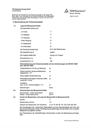 TÜV Rheinland Energy GmbH u Luftreinhaltung Ä TUVRheinland® \ Genau. Richtig. Bericht über die Durchführung von Emissionsmessungen an der Anlage HKW West - Block 1, der Volkswagen AG am Standort Wolfsburg, für die Messobjekte Seite 15 von 61 PCDD/PCDF, PCB, Schwermetalle, Benzo(a)pyren, Hg, NHs, HCI und HF, Be- richts-Nr. 936/21243572/A 3 Beschreibung der Probenahmestelle 3.1 Lage des Messquerschnittes Die Messstelle befindet sich - im Freien oO - im Gebäude oO - vor Saugzug oO - hinter Saugzug - im Abgaskanal [1 - im Schornstein & Die Probenahmestelle liegt 34 m über Bodenniveau Die Abgasführung ist vertikal Der Zugang erfolgt über Aufzug und Treppen Einlaufstrecke in m: 20 Auslaufstrecke in m: 106 Übereinstimmung der Probenahmestelle mit den Anforderungen der DIN EN 15259 bzw. DIN EN 13284 Auslaufstrecke > 5 Da bis zur Mündung: ja Winkel zwischen Gasstrom/Mittelachse ja Abgaskanal < 15°: keine negative lokale Strömung: ja Mindestgeschwindigkeit vorhanden (Diffe- ja renzdruck > 5 Pa): ' Verhältnis max. zu min. Geschwindigkeit < 3:1: ja Bemerkungen: keine 3.2 Abmessungen des Messquerschnittes Durchmesser - runder Querschnitt: 2,9 m Fläche - runder Querschnitt: 66m? 3.3 Anzahl der Messachsen und Lage der Messpunkte im Messquerschnitt Achsen: 2 Messpunkte je Achse: 10 Abstand der Messpunkte vom Kanalrand: 8, 24, 43, 66, 99, 191, 224, 248, 266, 282 Die Konzentration der untersuchten Messobjekte und die Geschwindigkeit sind über den Messquerschnitt gleich verteilt. Die Messung der gasförmigen Komponenten kann an jedem Messpunkt durchgeführt werden. Die Probenahmen der Partikelförmigen Komponenten wurden als Netzmessung durchge- führt. 214601_2018_936_21243572A.docx
