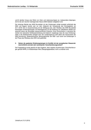 Niedersächsischer Landtag – 18. Wahlperiode Drucksache 18/2596 Im Rahmen des Verfahrens hat eine Beteiligung der Träger öffentlicher Belange stattgefunden. Die Unterlagen wurden öffentlich ausgelegt. Verschiedenen Institutionen und Behörden auf der nieder- sächsischen Seite der Elbe wurde die Möglichkeit gegeben, sich in das Verfahren einzubringen und Anregungen und Bedenken zu äußern. 1. Inwiefern beteiligt sich die Landesregierung an dem Genehmigungsverfahren? Das Land Niedersachsen hat sich durch den Niedersächsischen Landesbetrieb für Wasserwirt- schaft, Küsten- und Naturschutz (NLWKN) als Träger öffentlicher Belange mit zwei Stellungnahmen vom 09.08.2017 und 18.06.2018 geäußert. Hinsichtlich der Inhalte wird auf die Antworten zu den Fragen 4 und 5 verwiesen. Der Kreis Steinburg hat mitgeteilt, dass im Rahmen des Verfahrens folgende Behörden der mittel- und unmittelbaren Landesverwaltung Niedersachsens als Träger öffentlicher Belange um Stellung- nahme gebeten wurden: Landkreise Cuxhaven und Stade, NLWKN - Betriebsstelle Lüneburg, Staatliches Fischereiamt Bremerhaven, Niedersächsisches Landesamt für Verbraucherschutz und Lebensmittelsicherheit - Dezernat Binnenfischerei. Der Landkreis Cuxhaven als untere Wasser- und Naturschutzbehörde und der NLWKN haben eine ausführlichere Stellungnahme abgegeben. 2. Inwiefern stellen die beantragten Einleitungsmengen und Höchstgrenzen für die Einlei- tung von radioaktiven Stoffen eine Veränderung zu der bisherigen wasserrechtlichen Genehmigung dar (bitte je Nuklid aufführen)? Die beantragten Einleitungsmengen und Höchstgrenzen für die Einleitung von radioaktiven Stoffen stimmen mit der derzeit gültigen wasserrechtlichen Erlaubnis vom 12.05.2017 überein. Lediglich der Ort der Einleitung ändert sich. In der wasserrechtlichen Erlaubnis werden bei den Aktivitätsab- gaben nicht die einzelnen Radionuklide begrenzt, sondern die Summe des Nuklidvektors (Nuklid- gemisch ohne Tritium) sowie die Aktivitätsabgabe des Tritiums. Die Ableitung radioaktiver Stoffe ist in der aktuellen Erlaubnis wie folgt begrenzt und wurde weiterhin entsprechend beantragt: Gelöste 11 13 Spalt- und Aktivierungsprodukte (ohne Tritium) 1,85 x 10 Bq/a; Tritium 3,7 x 10 Bq/a. 3. Wofür und warum wird die neue Leitung benötigt? In dem Verfahren beantragt der Betreiber, die bereits vorhandene Einleitung des gereinigten (Rück- haltung radioaktiver Stoffe gemäß KTA 3603) anfallenden radioaktiv kontaminierten Abwassers an einem anderen Punkt der Elbe weiter in den Elbstrom einzuleiten. Durch den stark reduzierten Kühlwasserstrom wird in absehbarer Zukunft kein ausreichendes Vo- lumen an Vermischungswasser für das Abwasser aus den Abgabebehältern zu Verfügung stehen. Daher soll das abzugebende Wasser direkt in den Elbestrom eingeleitet werden, um eine ausrei- chende Vermischung zu erreichen. 4. Sieht die Landesregierung die Möglichkeit einer Verletzung der Schutzgüter, wie sie in der vor einigen Tagen in Kraft getretenen Schutzgebietsverordnung zum „NSG Mün- dungstrichter Elbe“ benannt sind? Schutzzweck der Verordnung über das Naturschutzgebiet „Niedersächsischer Mündungstrichter der Elbe“ sind die Erhaltung, Entwicklung oder Wiederherstellung von Lebensstätten, Biotopen oder Lebensgemeinschaften wildlebender, schutzbedürftiger Tier- und Pflanzenarten sowie der Schutz von Natur und Landschaft wegen ihrer Seltenheit, besonderen Eigenart, Vielfalt oder hervorragen- den Schönheit. Die Erklärung zum NSG bezweckt insbesondere die Erhaltung oder Wiederherstel- lung naturnaher Ästuarbereiche und ihrer Lebensgemeinschaften, die Erhaltung oder Wiederher- stellung der funktionalen Beziehungen der Watt- und Wasserflächen zu den angrenzenden tidege- prägten Vorlandbereichen und den eingedeichten Marschen sowie der ökologischen Verbindungs- funktion (§ 2 Abs. 1 der NSG-Verordnung). Die Verordnung führt im Schutzzweck (§ 2 Abs. 1 2