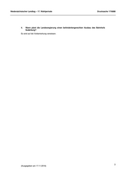 Niedersächsischer Landtag – 17. Wahlperiode Drucksache 17/6888 4. Wann plant die Landesregierung einen behindertengerechten Ausbau des Bahnhofs Suderburg? Es wird auf die Vorbemerkung verwiesen. 3 (Ausgegeben am 17.11.2016)
