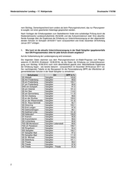 Niedersächsischer Landtag – 17. Wahlperiode Drucksache 17/6788 nem Stichtag. Dementsprechend kann anders als beim Planungsinstrument, das nur Planungswer- te ausgibt, von einer gesicherten Datenlage gesprochen werden. Nach Vorliegen der Erhebungsdaten zum Statistiktermin findet eine aufwändige Prüfung durch die Niedersächsische Landesschulbehörde (NLSchB) und das Kultusministerium statt. Eine abschlie- ßende Aussage über die Ergebnisse der Erhebung zur Unterrichtsversorgung an den allgemeinbil- denden Schulen im Schuljahr 2016/2017 kann voraussichtlich erst Ende Dezember 2016/Anfang Januar 2017 erfolgen. 1. Wie hoch ist die aktuelle Unterrichtsversorgung in der Stadt Salzgitter (gegebenenfalls laut IZN-Prognosemodul; bitte für jede Schule einzeln angeben)? Auf die Vorbemerkung der Landesregierung wird verwiesen. Die folgenden Daten stammen aus dem Planungsinstrument izn-Stabil-Prognose zum Progno- setermin 01.08.2016 (Endstand: 18.08.2016), da die Daten der Erhebung zur Unterrichtsversor- gung zum Stichtag 18.08.2016 noch nicht abschließend geprüft sind. Abschließende Ergebnisse der Erhebung liegen - wie bereits bekannt - voraussichtlich im Dezember 2016/Januar 2017 vor. Der nachfolgenden Tabelle ist der Bezugswert für die Personalplanung (BPP) der öffentlichen all- gemeinbildenden Schulen in der Stadt Salzgitter zu entnehmen: Schulname Ort BPP in % GS Altstadt Salzgitter 103,8 GS Am Fredenberg Salzgitter 99,9 HS am Fredenberg Salzgitter 100,7 GY am Fredenberg Salzgitter 95,6 GHS am Gutspark Salzgitter 91,0 GS am Ostertal Salzgitter 101,4 GS Am See Salzgitter 114,0 GS am Sonnenberg Salzgitter 111,9 GS Am Ziesberg Salzgitter 98,6 HS an der Klunkau Salzgitter 100,0 GS an der Wiesenstraße Salzgitter 101,8 HS Dr. Klaus-Schmidt Salzgitter 92,7 GS Dürerring Salzgitter 100,1 RS Emil Langen Salzgitter 97,9 RS Gebhardshagen Salzgitter 98,1 RS Gottfried Linke Salzgitter 101,8 GS Hallendorf Salzgitter 106,9 GY Kranich Salzgitter 92,8 GS Kranichdamm Salzgitter 98,6 GS Lichtenberg Salzgitter 95,8 FöS-GB Montessori Salzgitter-Lebenstedt 89,6 FöS-LE Pestalozzi Salzgitter 108,7 GS Ringelheim Salzgitter 94,4 IGS Salzgitter Salzgitter 100,7 GY Salzgitter Bad Salzgitter 97,2 RS Salzgitter-Bad Salzgitter 111,9 GS St. Michael Salzgitter 103,0 GS Steterburg Salzgitter 101,1 GS Thiede Salzgitter 99,2 RS Thiede Salzgitter 97,6 HS Thiede Salzgitter - Thiede 91,4 2