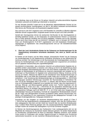 Niedersächsischer Landtag – 17. Wahlperiode Drucksache 17/8542 che/Teeküche, den Personalraum, den Sanitärbereich, das Außengelände sowie den Hausaufga- benraum, nach Einzelfallprüfung unter Hinzuziehung eines stimmigen Raumkonzeptes flexibel zu- gelassen. Hervorzuheben ist schließlich mit Blick auf den Kontext der Fragestellung das vonseiten der Lan- desregierung initiierte Modellvorhaben zum Kooperativen Hort. Im Rahmen dessen wird derzeitig die Zusammenführung und Verzahnung der unterschiedlichen Rechtsbereiche „Schule“ und „Hort“ auch unter modifizierten Raumstandards nach § 11 Abs. 2 KiTaG erprobt. Das Modellvorhaben dient gerade der Erprobung neuer pädagogischer Konzeptionen und Methoden und bezieht inso- fern namentlich auch den Aspekt der Doppelnutzung vorhandener Schulräume mit ein. Eine Evalu- ation des Modellvorhabens ist nach Abschluss der Erprobungsphase im Jahr 2021 vorgesehen. Im Rahmen der Evaluation sind weitere Erkenntnisse dahin gehend zu erwarten, wie sich zunehmend mehr Ganztagsschulen in Niedersachsen, Ganztagsgrundschulen und Horte auf der Basis eines jeweils miteinander abgestimmten Konzepts mit ihren unterschiedlichen Aufgaben und Professio- nen optimal ergänzen können Sollte das Ergebnis der Evaluation weitere Möglichkeiten zur Doppelnutzung von Räumlichkeiten für Hortplätze sowie Unterrichtsnutzung aufzeigen, wird die Landesregierung dem Landtag Vor- schläge für eine neue gesetzliche Regelung unterbreiten. 5. Wann erfolgt die Novellierung des KiTaG? Das MK ist mit der Ausarbeitung eines Referentenentwurfs zur Änderung des KiTaG befasst. Das KiTaG ist ein Gesetz im formellen Sinne. Damit liegt die Gesetzgebungskompetenz beim Landtag. Aufgrund der verbleibenden Restzeit der laufenden Legislatur geht die Landesregierung nicht da- von aus, dass der Gesetzgeber bis Januar 2018 eine Novellierung des KiTaG beschließen kann. Im Übrigen ist der quantitative und qualitative Ausbau der Kindertagesbetreuung für die Landesre- gierung nach wie vor von maßgeblicher Bedeutung. Prioritäre Qualitätsverbesserungen an nieder- sächsischen Kindertagesstätten wurden daher bereits in dieser Legislaturperiode umgesetzt. So hat die Landesregierung beispielsweise mit der Einführung der dritten Kraft in Krippengruppen eine wesentliche Verbesserung des Personalschlüssels eingeführt. Auch wurden die Ausgaben für die Sprachförderung in Kindertagesstätten verdoppelt. 5 (Ausgegeben am 09.08.2017)