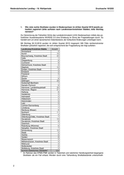 Niedersächsischer Landtag – 18. Wahlperiode Drucksache 18/5203 9. Wie viele der unter 1. genannten Straftaten hatten einen sozialdarwinistischen Hinter- grund? 17 der Vorgänge sind einem sozialdarwinistischen Hintergrund zugeordnet. 10. Wie viele Tatverdächtige konnten zu den unter 1. genannten Straftaten ermittelt wer- den? Zu den genannten Vorgängen wurden 158 Tatverdächtige ermittelt. 11. Zu wie vielen Verurteilungen kam es im Zuge der Ermittlungen? Eine Aussage über die Erledigung der bei der Polizei im dritten Quartal eingeleiteten Ermittlungs- verfahren durch Staatsanwaltschaften und Gerichte ist aufgrund der Tatsache, dass eine soge- nannte Verlaufsstatistik nicht geführt wird, nicht möglich. Aus der justiziellen Statistik ergibt sich, dass im dritten Quartal 2019 zwölf Verurteilungen wegen rechtsmotivierter Straftaten erfolgt sind. Auf Ebene der Staatsanwaltschaften werden seit dem 01.07.2017 elektronische Zusatzattribute hinsichtlich rechtsmotivierter Straftaten geführt. Aufgrund dessen ist seitdem eine Auswertung nach Quartalen möglich. Dieser Statistik ist nur die Anzahl der Verfahren zu entnehmen, die in diesem Quartal eingestellt worden sind bzw. in denen eine Verurteilung erfolgt ist. Es ist kein Rückschluss darauf möglich, in welchem Zeitraum das jeweilige Verfahren eingeleitet wurde. Insofern können im jeweiligen Quartal abgeschlossene Verfahren auch schon in einem früheren Quartal eingeleitet worden sein. Anzumerken ist, dass aufgrund der kurzen Zeitspanne seit dem Verstreichen des dritten Quartals die polizeilichen Ermittlungen sowie die justiziellen Verfahren noch nicht in jedem Fall abgeschlos- sen und Mitteilungen der Staatsanwaltschaften an die zuständige Polizeidienststelle über Verfah- renseinstellungen bzw. Verfahrensausgänge gegebenenfalls noch nicht vollständig im polizeilichen Vorgangsbearbeitungssystem eingepflegt sind. 12. In wie vielen Fällen wurde die Ermittlung eingestellt (bitte aufschlüsseln nach Einstel- lungsgrund)? Im dritten Quartal 2019 sind 152 wegen solcher Straftaten eingestellte Verfahren in der justiziellen Statistik recherchiert worden (Stand 05.11.2019). Aufgeschlüsselt nach Einstellungsgrund stellt sich dies wie folgt dar: Einstellungsgrund Anzahl § 170 II StPO, Schuldausschließungsgrund 5 § 170 II StPO, Tat erfüllt keinen Straftatbestand 25 § 170 II StPO, Täterschaft nicht nachweisbar 68 § 170 II StPO, Verfahrenshindernis 6 § 170 II StPO wegen erwiesener Unschuld 2 Einstellung § 45 II JGG (erzieherische Maßnahme) 6 Einstellung § 45 III JGG (Jugendrichterliche Maßnahme) 2 Einstellung § 45 JGG (Voraussetzungen § 153 StPO) 7 Einstellung nach § 153a I StPO (Geldbetrag) 3 Einstellung nach § 153a I StPO (Täter-Opfer-Ausgleich) 2 Einstellung nach § 154 I StPO 14 Einstellung nach § 154f StPO (z. B. unbekannter Aufenthalt) 1 Einstellung wegen Geringfügigkeit (§ 153 I StPO) 10 Verweisung auf den Weg der Privatklage 1 (Verteilt am 28.11.2019) 4