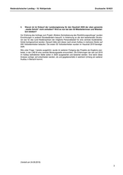 Niedersächsischer Landtag – 18. Wahlperiode Drucksache 18/4631 4. Warum ist im Entwurf der Landesregierung für den Haushalt 2020 der oben genannte „zweite Schritt“ nicht enthalten? Wird es nun bei den 50 Mitarbeiterinnen und Mitarbei- tern bleiben? Vor Erteilung des Auftrags zum Projekt „Weitere Zentralisierung des Rückführungsvollzugs“ wurden Einrichtungen in anderen Bundesländern besucht. In Anlehnung an die dort bestehenden Struktu- ren war für das Land Niedersachsen der mögliche Personalbedarf für eine zentrale Ausländerbe- hörde hochgerechnet worden. Danach hätte sich dieser nach einem Aufbau in mehreren Stufen auf 200 Vollzeiteinheiten belaufen. Die ersten 50 Vollzeiteinheiten wurden im Haushalt 2019 bereitge- stellt. Wie unter Frage 1 bereits ausgeführt, wurde im weiteren Fortgang des Projekts als Ergebnis erar- beitet, in der LAB NI eine zentrale Beratungsstelle einzurichten. Die Erfahrungen der seit Juli 2019 im Aufbau befindlichen Stelle sollen in 2020 ausgewertet und bewertet werden. Erst wenn diese Analyse vorliegt, soll entschieden werden, ob und gegebenenfalls in welchem Umfang ein weiterer Ausbau in Betracht kommt. (Verteilt am 24.09.2019) 3