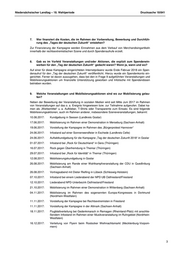 Niedersächsischer Landtag – 18. Wahlperiode Drucksache 18/841 7. Wer finanziert die Kosten, die im Rahmen der Vorbereitung, Bewerbung und Durchfüh- rung des „Tages der deutschen Zukunft“ entstehen? Zur Finanzierung der Kampagne werden Einnahmen aus dem Verkauf von Merchandisingartikeln innerhalb der rechtsextremistischen Szene und durch Spendenaufrufe erzielt. 8. Gab es im Vorfeld Veranstaltungen und/oder Aktionen, die explizit zum Spendenein- werben für den „Tag der deutschen Zukunft“ gedacht waren? Wenn ja, wann und wo? Auf einer für diese Kampagne eingerichteten Internetpräsenz wurde Ende Februar 2018 ein Spen- denaufruf für den „Tag der deutschen Zukunft“ veröffentlicht. Hierzu wurde ein Spendenkonto ein- gerichtet. Ferner ist davon auszugehen, dass bei den in Frage 9 aufgeführten Veranstaltungen und Mobilisierungsaktionen um finanzielle Unterstützung geworben und Infotische mit Spendendosen betrieben wurden. 9. Welche Veranstaltungen und Mobilisierungsaktionen sind wo zur Mobilisierung gelau- fen? Neben der Bewerbung der Veranstaltung in sozialen Medien wird seit Mitte Juni 2017 im Rahmen von Veranstaltungen auf das o. a. Ereignis hingewiesen bzw. zur Teilnahme aufgerufen. Dabei ka- men als „Werbemittel“ u. a. Aufkleber, T-Shirts oder Transparente zum Einsatz. Es sind folgende Mobilisierungsaktionen, auch im Rahmen anderer, insbesondere Szeneveranstaltungen, bekannt: 10.06.2017: Kundgebung in Seesen (Landkreis Goslar) 17.06.2017: Mobilisierung im Rahmen einer Demonstration in Merseburg (Sachsen-Anhalt) 19.06.2017: Vorstellung der Kampagne im Rahmen des „Bürgerprotest Hannover“ 24.06.2017: Infostand auf einer Sonnenwendfeier in Eschede (Landkreis Celle) 24.06.2017: Auftaktkundgebung für die Kampagne „Tag der deutschen Zukunft 2018“ in Goslar 01.07.2017: Infostand bei „Rock für Deutschland“ in Gera (Thüringen) 16.07.2017: Rock gegen Überfremdung in Themar (Thüringen) 29.07.2017: Infostand bei „Rock für Identität“ in Themar (Thüringen) 12.08.2017: Mobilisierungskundgebung in Goslar 26.08.2017: Mobilisierung am Rande einer Wahlkampfveranstaltung der CDU in Quedlinburg (Sachsen-Anhalt) 26.08.2017: Vortragsabend mit Dieter Riefling in Lübeck (Schleswig-Holstein) 07.10.2017: Infostand bei einem Liederabend der NPD UB Ostfriesland/Friesland 12.10.2017: Liederabend NPD-Unterbezirk Ostfriesland/Friesland 21.10.2017: Mobilisierung im Rahmen einer Demonstration in Wittenberg (Sachsen-Anhalt) 04.11.2017: Mobilisierung im Rahmen des sogenannten Europa-Kongresses in Dortmund (Nordrhein-Westfalen) 11.11.2017: Vorstellung der Kampagne bei Rechtsextremisten in Friesland 11.11.2017: Vorstellung der Kampagne in der Altmark (Sachsen-Anhalt) 18.11.2017: Flugblattverteilung bei Gedenkmarsch in Remagen (Rheinland-Pfalz) mit anschlie- ßendem Infostand im Rahmen einer Musikveranstaltung im Ruhrgebiet (Nordrhein- Westfalen) 16.12.2017: Verteilung von Flyern beim Rostocker Weihnachtsmarkt (Mecklenburg-Vorpom- mern) 3