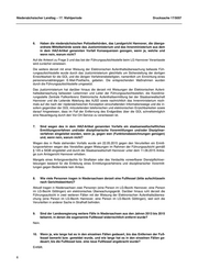 Niedersächsischer Landtag 17. Wahlperiode Drucksache 17/5057 Kleine Anfrage zur schriftlichen Beantwortung mit Antwort der Landesregierung - Drucksache 17/4826 - „Acht Tage ohne Fußfessel“ - Wie konnte es dazu kommen? Anfrage des Abgeordneten Thomas Adasch (CDU) an die Landesregierung, eingegangen am 09.12.2015, an die Staatskanzlei übersandt am 15.12.2015 Antwort des Niedersächsischen Justizministeriums namens der Landesregierung vom 22.01.2016, gezeichnet Antje Niewisch-Lennartz Vorbemerkung des Abgeordneten Die Hannoversche Allgemeine Zeitung berichtete in ihrer Onlineausgabe am 8. Oktober 2015 unter der Überschrift „Acht Tage ohne Fußfessel“: „Nach der Verurteilung des 80-jährigen Wilhelm P. ist noch immer nicht geklärt, warum dem zigfach vorbestraften Sexualstraftäter im Frühjahr dieses Jahres acht Tage lang keine neue Fußfessel angelegt wurde. Eine Richterin am Amtsgericht Han- nover hatte den in Stöcken lebenden P. am Dienstag zu einer Haftstrafe von sechs Monaten verur- teilt, weil er am 30. April den GPS-Sender von seinem Fußgelenk geschnitten und damit gegen seine Bewährungsauflagen verstoßen hatte. Obwohl die Polizei das Vergehen zeitnah bemerkte, dauerte es mehr als eine Woche, bis P. wieder eine Fußfessel angelegt wurde. Wie es zu diesem Versäumnis kam, konnten gestern weder die Polizei noch das Landgericht als zuständige Füh- rungsaufsicht erklären.“ Vorbemerkung der Landesregierung Seit dem 01.01.2011 ist es gemäß § 68 b Abs. 1 Satz 1 Nr. 12 des Strafgesetzbuches (StGB) mög- lich, Führungsaufsichtsprobanden die Weisung zu erteilen, ein Gerät zur elektronischen Überwa- chung ihres Aufenthalts (Elektronische Aufenthaltsüberwachung [EAÜ]) zu tragen. Die Weisung ist auch unter dem Begriff „elektronische Fußfessel“ bekannt. In diesem Fall ordnet das Gericht an, dass die verurteilte Person für die Dauer der Führungsaufsicht oder für eine kürzere Zeit die für ei- ne elektronische Überwachung ihres Aufenthaltsortes erforderlichen technischen Mittel ständig in betriebsbereitem Zustand bei sich zu führen und deren Funktionsfähigkeit nicht zu beeinträchtigen hat. Die Erteilung einer solchen Weisung ist gemäß § 68 b Abs. 1 Satz 3 StGB nur zulässig, wenn 1. die Führungsaufsicht aufgrund der vollständigen Vollstreckung einer Freiheitsstrafe oder Ge- samtfreiheitsstrafe von mindestens drei Jahren oder aufgrund einer erledigten Maßregel ein- getreten ist, 2. die Freiheitsstrafe oder Gesamtfreiheitsstrafe oder die Unterbringung wegen einer oder meh- rerer Straftaten der in § 66 Abs. 3 Satz 1 StGB genannten Art verhängt oder angeordnet wur- de, 3. die Gefahr besteht, dass die verurteilte Person weitere Straftaten der in § 66 Abs. 3 Satz 1 StGB genannten Art begehen wird, und 4. die Weisung erforderlich erscheint, um die verurteilte Person durch die Möglichkeit der Daten- verwendung nach § 463 a Abs. 4 Satz 2 der Strafprozessordnung (StPO), insbesondere durch die Überwachung der Erfüllung einer nach Satz 1 Nr. 1 oder 2 auferlegten Weisung, von der Begehung weiterer Straftaten der in § 66 Abs. 3 Satz 1 StGB genannten Art abzuhalten. 1