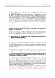 Niedersächsischer Landtag – 17. Wahlperiode Drucksache 17/8857 3. Welche Möglichkeiten der Kooperation zwischen Kindertagesstätten und Sportvereinen gibt es in Niedersachsen? Die Initiative „Bewegter Kindergarten“ in Niedersachsen setzt sich aus drei Modulen zusammen. Das Modul 1 „Bildungsoffensive“ (ehemaliger Rollplan) wird durch das Kultusministerium verant- wortet, das Modul 2 „Markenzeichen Bewegungskita“ wird durch den Niedersächsischen Turner- bund verantwortet. Das Modul 3 „Aktionsprogramm Kooperation Kita - Sportverein“ wird durch den LandesSportBund Niedersachsen e. V. verantwortet. Das Kultusministerium und der LSB haben insbesondere mit dem Aktionsprogramm Kita und Sportverein als Baustein des „Bewegten Kinder- gartens“ eine Maßnahme zur Verbesserung der Zusammenarbeit zwischen Kita und Verein ge- schaffen. In Niedersachsen bestehen deshalb zahlreiche Kooperationen zwischen Kindertagesstät- ten und Sportvereinen. 4. Wie fördert die Landesregierung Kooperationen zwischen Kindertagesstätten und Sportvereinen? Eine Förderung erfolgt über den LSB aus den Mitteln der Finanzhilfe des Landes im Rahmen des Programms „Kita und Sportverein“. In § 3 Abs. 1 Nr. 4 NSportFVO ist festgelegt, dass der LSB von der Finanzhilfe des Landes Nieder- sachsen jährlich mindestens 400 000 Euro für bewegungs-, spiel- und gesundheitsfördernde Maß- nahmen in Kindertagesstätten und im außerunterrichtlichen Schulsport zu verwenden hat. 5. Ist es seit 2013 zu einer Verringerung der für die Förderung solcher Kooperationen ein- gesetzten Landesmittel gekommen? Die Förderung ist seit dem Jahr 2013 weitestgehend unverändert. 6. Wie hat sich das Kooperationsprogramm „Kindergarten und Sportverein“ seit 2013 entwickelt? Die Anzahl der Kooperationen ist seit dem Jahr 2013 weitestgehend unverändert. Das Programm ist etabliert und wird in bewährter Form vom LSB fortgeführt. Pro Jahr finden in der Regel ca. 360 bis 370 Kooperationen statt. 7. Welche Fortbildungsangebote der Landesregierung gibt es, um Kita-Fachkräfte bezüg- lich sportlicher Beschäftigungsmöglichkeiten in der frühkindlichen Bildung zu schu- len? Die Gewährleistung bewegungsfördernder Lernumgebungen und entsprechender Angebote ent- sprechend dem Bildungsauftrag von Kindertageseinrichtungen basiert im Wesentlichen auf der Fachkompetenz der pädagogischen Fachkräfte. Seit 2004 fördert das Land Niedersachsen daher ausgewählte Tageseinrichtungen für Kinder, die den Bildungsauftrag gemäß den im niedersächsischen Orientierungsplan für Bildung und Erziehung beschriebenen Bildungszielen in besonderer Weise umsetzen. Diese Konsultationskindertagesstät- ten bieten im Auftrag des Kultusministeriums in ihren Einrichtungen vor Ort Beratungs- und Hospi- tationsangebote zu ausgewählten Themenbereichen wie Bewegung und Entspannung oder bewe- gungsfördernden Raumkonzepten an. 2016 wurde das Angebot um Konsultationsverbünde aus Kita und Grundschule erweitert, die ihre gute Bildungspraxis durchgängiger Bildungsprozessgestal- tung im Übergang vom Kindergarten in die Grundschule vermitteln. Um Fach- und Leitungskräften der Kindertagesbetreuung außerdem stetig die Möglichkeit zur Wei- terentwicklung ihrer Kompetenzen im Hinblick auf die Förderung von Bewegung, auch als Quer- schnittsaufgabe mit anderen Bildungsbereichen, zu geben, werden im Rahmen des jährlichen Fort- bildungsprogramms des Niedersächsischen Landesjugendamts (NLJA) regelmäßig Qualifizierungs- 5