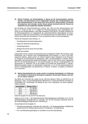Niedersächsischer Landtag – 17. Wahlperiode Drucksache 17/8857 23. Welche Probleme und Schwierigkeiten in Bezug auf die Zusammenarbeit zwischen Schulen und Sportvereinen sind in Gesprächen zwischen dem Landessportbund und dem Kultusministerium in den Jahren 2015, 2016 und 2017 erörtert worden, und welche Konsequenzen und Lösungen wurden daraus jeweils entwickelt (bitte die Themen der Gespräche und die Ergebnisse detailliert darstellen)? Auf Grundlage der Rahmenvereinbarung zwischen dem LSB und dem Kultusministerium (§ 3 Abs. 2 a. F. sowie § 4 Abs. 2 n. F.) pflegen die Vereinbarungspartner einen regelmäßigen Aus- tausch je nach Gesprächsbedarf, in der Regel mindestens einmal jährlich. Ziel dieser Gespräche ist ein Erfahrungsaustausch zur Ausgestaltung der außerunterrichtlichen Sportangebote von Ganz- tagsschulen. Fragen des Kommunikations- und Informationsflusses sind dabei ebenso von Bedeu- tung wie weiterführende Informationen in Form von Broschüren oder in eines Internetportals. Themen der Gespräche waren bislang u. a.: – Freiwilligendienst/ Bundesfreiwilligendienst, – Fragen der Arbeitnehmerüberlassung, – Verwaltungsaufwand, – Strategie Kita-Schule-Verein 2014 bis 2020, – BeSS-Servicestellen. Insbesondere konnte in diesem Zusammenhang das grundlegende Problem des Einsatzes junger Erwachsener, die im Rahmen ihres Freiwilligendienstes ihres Einsatzes u. a. auch in der Ganz- tagsschule ableisten, geklärt werden. Ein weiteres Ergebnis dieser Gespräche ist das Programm zur Förderung von Servicestellen für Bewegungs-, Spiel- und Sportangeboten in Schulen, Kinder- tagesstätten und Sportvereinen (BeSS-Servicestellen). Damit hat der LSB mit seiner Sportjugend das Ziel, die Rahmenbedingungen für die Zusammenarbeit von Schulen, Kindertagesstätten und Sportvereinen zu verbessern und so die Qualität und Quantität der Kooperationen zu steigern. BeSS-Servicestellen werden von Sportbünden eingerichtet, um vor Ort die Zusammenarbeit von Schulen, Kindertagesstätten und Sportvereinen zu initiieren, zu fördern, zu begleiten und Maßnah- men umzusetzen. 24. Welche Haushaltsmittel des Landes werden im laufenden Haushaltsjahr zur Förderung von Projekten im Bereich des Schulsports eingesetzt? Wurde dieser Betrag in den letz- ten vier Jahren reduziert? Aus Mitteln der Finanzhilfe des Landes hat der LSB einen Betrag in Höhe von 609 000 Euro für bewegungs-, spiel- und gesundheitsfördernde Maßnahmen im außerunterrichtlichen Schulsport im Haushaltsjahr 2017 veranschlagt. Der Betrag hat sich in den vergangenen vier Jahren folgender- maßen entwickelt: Haushaltsjahr Betrag in Euro 2014 471 092,36 2015 546 249,04 2016 428 791,76 2017 609 000,00 Jeweils Ist-Ausgaben. Für das Jahr 2017 Haushaltsansatz. Aufgrund von § 14 Abs. 1 des Niedersächsischen Glücksspielgesetzes (NGlüSpG) ist ein Teil der Glücksspielabgabe zweckgebunden zu verwenden. Der auf den Schulsport entfallende Anteil an der Glücksspielabgabe beträgt seit 2014 340 000 Euro. Veranschlagt sind die Ausgaben für – Schulsportveranstaltungen außerhalb des Unterrichts, z. B. Bundesjugendspiele, Wettbewerbe „Jugend trainiert für Olympia/Jugend trainiert für Paralympics“, Feriensportkurse, – Fort- und Weiterbildungslehrgänge für Lehrkräfte mit und ohne Sportfakultas, 28