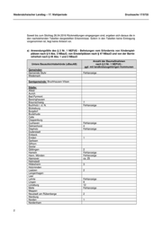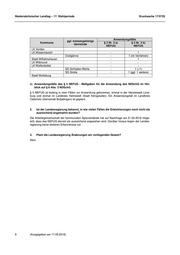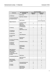 Niedersächsischer Landtag – 17. Wahlperiode Drucksache 17/5733 Anzahl der Baumaßnahmen Untere Bauaufsichtsbehörde (uBauAB) nach § 2 Nr. 1 NEFUG - ggf. mit landkreiszugehörigen Kommunen Ganderkesee: 6 Harpstedt: 1 Hatten: 2 Oldenburg Hude: 2 Wardenburg: 6 Wildeshausen: 1 Glandorf: 2 Dissen: 1 Wallenhorst: 1 Osnabrück Bramsche: 1 Bad Laer: 1 Bad Essen: 1 Hasbergen: 1 Grasberg: 1 Osterholz Osterholz-Scharmbeck: 3 Worpswede: 1 Osterode am Harz Peine Fehlanzeige Visselhövede: 1 Rotenburg (Wümme) Zeven: 1 Schaumburg Bad Nenndorf: 2 Apensen: 1 Stade Fredenbeck: 1 Uelzen Vechta Verden Brake: 1 Wesermarsch Ovelgönne: 1 Wittmund Wolfenbüttel Schöppenstedt: 1 b) Anwendungsfälle des § 2 Nr. 2 NEFUG - Befreiung von einer Baugenehmigung für die Er- richtung und die Änderung von mobilen Unterkünften (Nr. 2 Buchst. a) sowie von Nut- zungsänderungen (Nr. 2 Buchst. b) Anwendungsfälle ggf. kreisangehörige Kommune § 2 Nr. 2 a) § 2 Nr. 2 b) Gemeinde NEFUG NEFUG LK Ammerland LK Aurich Stadt Braunschweig - 4 LK Celle - 1 SG Lachendorf 2 - Südheide - 2 Winsen (Aller) - 1 LK Cloppenburg ca. 4-5 ca. 4-5 LK Cuxhaven Stadt Delmenhorst LK Diepholz Stadt Emden LK Emsland Stadt Lingen - - LK Friesland - 2 LK Gifhorn - - LK Goslar 4
