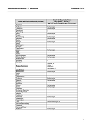 Niedersächsischer Landtag – 17. Wahlperiode Drucksache 17/5733 Anzahl der Baumaßnahmen Untere Bauaufsichtsbehörde (uBauAB) nach § 2 Nr. 1 NEFUG - ggf. mit landkreiszugehörigen Kommunen Nordhorn Northeim Fehlanzeige Oldenburg Fehlanzeige Osnabrück 5 Papenburg 4 Peine Fehlanzeige Rinteln 1 Ronnenberg Fehlanzeige Salzgitter Fehlanzeige Seelze 1 Springe Fehlanzeige Stade Stadthagen Sulingen Twistringen Uelzen Fehlanzeige Varel Vechta Wilhelmshaven Fehlanzeige Winsen (Luhe) Fehlanzeige Wolfenbüttel Wolfsburg 4 Wunstorf Sehnde: 4 Uetze: 1 Region Hannover Gehrden: 1 Isernhagen: 1 Landkreise: Ammerland Fehlanzeige Aurich Celle Cloppenburg Cuxhaven Fehlanzeige Diepholz Fehlanzeige Emsland Friesland Gifhorn Fehlanzeige Goslar Fehlanzeige Göttingen Grafschaft Bentheim Hameln-Pyrmont Harburg Heidekreis Helmstedt Fehlanzeige Hildesheim Holzminden Leer Westoverledingen: 3 Lüchow-Dannenberg Lüneburg Nienburg/Weser Northeim Fehlanzeige 3