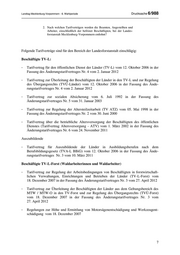 Landtag Mecklenburg-Vorpommern - 6. Wahlperiode Drucksache 6/988 2. Nach welchen Tarifverträgen werden die Beamten, Angestellten und Arbeiter, einschließlich der befristet Beschäftigten, bei der Landes- forstanstalt Mecklenburg-Vorpommern entlohnt? Folgende Tarifverträge sind für den Bereich der Landesforstanstalt einschlägig: Beschäftigte TV-L: - Tarifvertrag für den öffentlichen Dienst der Länder (TV-L) vom 12. Oktober 2006 in der Fassung des Änderungstarifvertrages Nr. 4 vom 2. Januar 2012 - Tarifvertrag zur Überleitung der Beschäftigten der Länder in den TV-L und zur Regelung des Übergangsrechts (TVÜ-Länder) vom 12. Oktober 2006 in der Fassung des Ände- rungstarifvertrages Nr. 4 vom 2. Januar 2012 - Tarifvertrag zur sozialen Absicherung vom 6. Juli 1992 in der Fassung des Änderungstarifvertrages Nr. 5 vom 31. Januar 2003 - Tarifvertrag zur Regelung der Altersteilzeitarbeit (TV ATZ) vom 05. Mai 1998 in der Fassung des Änderungstarifvertrages Nr. 2 vom 30. Juni 2000 - Tarifvertrag über die betriebliche Altersversorgung der Beschäftigten des öffentlichen Dienstes (Tarifvertrag Altersversorgung - ATV) vom 1. März 2002 in der Fassung des Änderungstarifvertrages Nr. 6 vom 24. November 2011 Auszubildende - Tarifvertrag für Auszubildende der Länder in Ausbildungsberufen nach dem Berufsbildungsgesetz (TVA-L BBiG) vom 12. Oktober 2006 in der Fassung des Ände- rungstarifvertrages Nr. 3 vom 10. März 2011 Beschäftigte TV-L-Forst (Waldarbeiterinnen und Waldarbeiter) - Tarifvertrag zur Regelung der Arbeitsbedingungen von Beschäftigten in forstwirtschaft- lichen Verwaltungen, Einrichtungen und Betrieben der Länder (TV-L-Forst) vom 18. Dezember 2007 in der Fassung des Änderungstarifvertrages Nr. 3 vom 27. April 2012 - Tarifvertrag zur Überleitung der Beschäftigten der Länder aus dem Geltungsbereich des MTW / MTW-O in den TV-Forst und zur Regelung des Übergangsrechts (TVÜ-Forst) vom 18. Dezember 2007 in der Fassung des Änderungstarifvertrages Nr. 3 vom 27. April 2012 - Regelungen zur Höhe und Ermittlung von Motorsägenentschädigung und Werkzeugent- schädigung vom 18. Dezember 2007 7