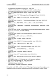 Landtag Mecklenburg-Vorpommern - 6. Wahlperiode Drucksache 6/5354 3. Wie viele Personen und wie viele Datensätze sind in den in Frage 1 genannten Dateien/Datenbanken jeweils gespeichert? Ein Datensatz im Sinne der Anfrage wird als abgeschlossene, logisch-sinnvolle Einheit innerhalb einer Datei gesehen, die eine Person, Sache oder ähnliches beschreibt und physikalisch zusammenhängend gespeichert wird. Die Datensätze sind in den verschiedenen Dateien aufgrund ihrer Verwendung anders strukturiert. Zu einer Person oder einem Objekt können mehrere Datensätze existieren wie beispielsweise im INPOL neben einer Kriminalakte und einem DNA-Datensatz auch Fahndungsinforma- tionen (gegebenenfalls auch mehrere) sowie mehrere Haftinformationen und erkennungs- dienstliche Maßnahmen zu einer Person gespeichert sein können. Die Zahl der Datensätze besitzt daher nur eine sehr begrenzte Aussagekraft zur Beurteilung der Anzahl der insgesamt betroffenen Personen. Im Einzelnen bestehen nachfolgende Speicherstände. INPOL M-V (Stand: 25.04.16 bzw. 31.03.16): - INPOL M-V Personenfahndung: 9.124 Personen mit 9.867 Fahndungsinformationen sowie 475 „örtliche Haftbefehle“ zu 414 Personen, - INPOL M-V Sachfandung: 264.632 Gegenstandsbeschreibungen, - INPOL M-V Kriminalaktennachweis: 85.104 Personen, - INPOL M-V Haftdatei: 4.536 Personen mit 7.807 Haft-Gruppen, - INPOL M-V Erkennungsdienst: 25.339 Personen mit insgesamt 43.176 erkennungs- dienstlichen Behandlungen. DNA-Analyse-Datei M-V (Stand: 31.03.16): 15.737 Personen und 5.007 Datensätze zu Spuren EVA (Stand: 10.05.16): 6.578.633 Personen (beinhalten Mehrfachzählungen und im Auslagerungsbestand anonymisierte Angaben zu Personen) und 10.053.396 Datensätze ZEUS (Stand: 25.04.16): 57.095 Personen. TLBS (Stand: 25.04.16): 26.933 Personen 3