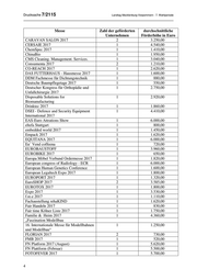 Drucksache 7/2115 Landtag Mecklenburg-Vorpommern - 7. Wahlperiode Jahr Messe Ausgaben Zweck in Euro 2017 Beach & Boat 30.116,45 Zuschuss zum Landesgemeinschaftsstand 2017 EXPO Real 23.800,00 Zuschuss zur Beteiligung am Landesgemeinschaftsstand 2017 MELA 25.411,86 Zuschuss zum Landesgemeinschaftsstand 2017 MEDICA 5.854,68 Zuschuss zum Standempfang auf dem Landesgemeinschaftsstand am 15.11.2017 20.000,00 Zuschuss Firmengemeinschaftsbeteiligung 2017 Grüne Woche 637.445,13* Imagepräsentation des Landes in der Länderhalle MV - Gesamtkosten 2017 BioFach 27.880,00 Gemeinschaftsbereich / VIP-Bereich 2017 Anuga 36.000,00 Gemeinschaftsbereich / VIP-Bereich 2017 Nordic Organic 8.380,00 Gemeinschaftsbereich / VIP-Bereich Food Fair 2017 transport logistic 11.305,00 Zuschuss Gemeinschaftsstand 2.437,83 Standempfang am Gemeinschaftsstand 2017 CEBIT 3.970,00 Werbemittel 2017 Boot Düsseldorf 10.000,00 Zuschuss Firmengemeinschaftsbeteiligung 2017 ARAB Health 15.000,00 Zuschuss Firmengemeinschaftsbeteiligung 2017 intec 10.000,00 Zuschuss Firmengemeinschaftsbeteiligung 2017 Call Center World 10.000,00 Zuschuss Firmengemeinschaftsbeteiligung 2017 Iran Renewable 12.500,00 Zuschuss Firmengemeinschaftsbeteiligung Energy 2017 AIX 10.420,83 Zuschuss Firmengemeinschaftsbeteiligung 2017 Hannover Messe 10.000,00 Zuschuss Firmengemeinschaftsbeteiligung 1 13.145,33 Zuschuss Firmengemeinschaftsbeteiligung 2 12.114,20 Ausstellerempfang 2017 Offshore WIND 15.000,00 Zuschuss Firmengemeinschaftsbeteiligung ENERGY 2017 NEVA 68.713,81 Zuschuss Firmengemeinschaftsbeteiligung 2017 Hanseboot 2017 10.000,00 Zuschuss Firmengemeinschaftsbeteiligung 2017 FMB Deutschland 2.980,87 Zuschuss Firmengemeinschaftsbeteiligung 2017 Messe-übergreifend 49.828,72 Neukonzeptionierung und Bau Landesmessestand (Auftragsvergabe 2016, Teilzahlung 2017) 2017/2018 21. Job- und 7.795,10 Konzept, Design, Layout und Produktion Roll- (Ausgaben in Weiterbildungs- ups Lehrerwerbekampagne sowie Anzeigen in 2017 für messe der Jobwoche Hamburg (Lehrer, Referendare) Messen in 2018) 2018 Internationale 17.850,00 Beteiligung des Landes Mecklenburg- Luftfahrtaus- Vorpommern am Chalet der Norddeutschen stellung ILA Bundesländer 10.000,00 Zuschuss Firmengemeinschaftsbeteiligung 2018 Mitteldeutsche 5.451,90 Ausstellerempfang am 15.02.2018 Handwerksmesse 14.000,00 Zuschuss Firmengemeinschaftsbeteiligung 10