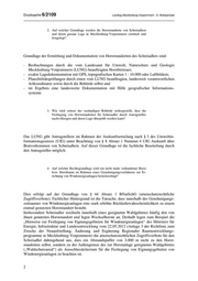 Drucksache 6/2109 Landtag Mecklenburg-Vorpommern - 6. Wahlperiode 2. Auf welcher Grundlage werden die Horststandorte von Schreiadlern und deren genaue Lage in Mecklenburg-Vorpommern ermittelt und festgelegt? Grundlage der Ermittlung und Dokumentation von Horststandorten des Schreiadlers sind: - Beobachtungen durch die vom Landesamt für Umwelt, Naturschutz und Geologie Mecklenburg-Vorpommern (LUNG) beauftragten Horstbetreuer; - exakte Lagedokumentation mit GPS, topografischen Karten 1 : 10.000 oder Luftbildern; - Plausibilitätsprüfungen durch einen vom LUNG beauftragten, landesweit verantwortlichen Artkoordinator sowie durch die Behörde selbst und - im Ergebnis eine landesweite Dokumentation mit Hilfe geografischer Informations- systeme. 3. Wie wird seitens der zuständigen Behörde sichergestellt, dass die Festlegung von Horststandorten für Schreiadler durch Antragsteller nachvollzogen und deren Lage überprüft werden kann? Das LUNG gibt Antragstellern im Rahmen der Auskunftserteilung nach § 3 des Umweltin- formationsgesetzes (UIG) unter Beachtung von § 8 Absatz 1 Nummer 4 UIG Auskunft über Brutvorkommen von Schreiadlern. Auf dieser Grundlage ist die fachliche Beurteilung durch den Antragsteller möglich. 4. Auf welcher Rechtsgrundlage wird ein nicht mehr vorhandener Horst bzw. Horstbaum im Rahmen eines Genehmigungsverfahrens zur Er- richtung von Windenergieanlagen berücksichtigt? Dies erfolgt auf der Grundlage von § 44 Absatz 1 BNatSchG (artenschutzrechtliche Zugriffsverbote). Fachlicher Hintergrund ist die Tatsache, dass innerhalb des Genehmigungs- zeitraumes von Windenergieanlagen eine stark erhöhte Rückkehrwahrscheinlichkeit zu einem einmal genutzten Horststandort besteht. Insbesondere Schreiadler wechseln innerhalb eines geeigneten Waldgebietes häufig den von ihnen genutzten Horststandort und legen Wechselhorste an. Deshalb legen zum Beispiel die „Hinweise zur Festlegung von Eignungsgebieten für Windenergieanlagen“ des Ministers für Energie, Infrastruktur und Landesentwicklung vom 22.05.2012 (Anlage 3 der Richtlinie zum Zwecke der Neuaufstellung, Änderung und Ergänzung Regionaler Raumentwicklungs- programme in Mecklenburg-Vorpommern) die artenschutzrechtlichen Zugriffsverbote für den Schreiadler dahingehend aus, dass ein Abstandspuffer von 3.000 m nicht zu den Horst- standorten selbst, sondern zu der Außengrenze des zur Horstanlage geeigneten Waldgebietes („Waldschutzareal“) als Ausschlusskriterium für die Festlegung von Eignungsgebieten von Windenergieanlagen zu beachten ist. 2