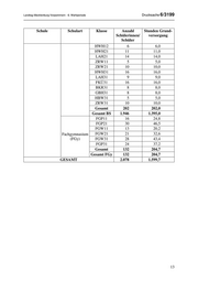 Drucksache 6/3199 Landtag Mecklenburg-Vorpommern - 6. Wahlperiode Schule Schulart Klasse Anzahl Stunden Grund- Schülerinnen/ versorgung Schüler VFA23 28 16,5 ZFA11 13 7,7 ZFA21 24 14,2 BÜK31 14 14,0 KBK31 20 11,8 KEH31 27 16,0 VKÄ31 26 15,4 KIG31 10 5,9 KTF31 21 12,4 RFA31 15 8,9 SFA31 31 18,3 SFI31 30 17,7 BAK31 26 15,4 BAK32 22 13,0 VFA31 23 13,6 VFA32 23 13,6 BÜK32 21 12,4 ASH31 19 11,2 KFM31 29 17,1 MFA31 28 16,5 BAZ31 7 7,0 FIN32 7 7,0 FLC31 20 11,8 GBR31 9 5,3 VFA33 18 10,6 ZFA31 24 14,2 MFA32 19 11,2 ASH32 21 12,4 MFA22 14 8,3 Gesamt 1.496 922,4 BÄW11 7 7,0 BKO11 8 8,0 BKO21 12 12,0 BKR11 15 15,0 BKR21 10 10,0 GBH11 8 8,0 GBH21 8 8,0 HBW11 6 6,0 HWH11 10 10,0 12