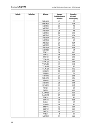 Drucksache 6/3199 Landtag Mecklenburg-Vorpommern - 6. Wahlperiode Schule Schulart Klasse Anzahl Stunden Schülerinnen/ Grund- Schüler versorgung MBA11 13 7,7 MBA21 20 11,8 MET01 20 7,0 MET02 22 7,7 MET03 28 9,8 MET11 22 13,0 MET12 21 12,4 MET13 24 14,2 MET14 15 8,9 MET21 21 12,4 MET22 20 11,8 MET23 18 10,6 MET24 11 6,5 TIW11 28 16,5 TIW21 18 10,6 TIW22 23 13,6 VFA 11 28 16,5 VFA 21 32 18,9 VKÄ 21 19 11,2 YLA 11 16 9,5 YLA 21 19 11,2 BÜK31 22 13,0 KEH31 12 7,1 VKÄ31 23 13,6 MBA31 21 12,4 VFA31 33 19,5 MET31 25 14,8 KFM31 19 11,2 FWI31 14 8,3 FAS31 17 10,0 LAW31 27 16,0 LAW32 25 14,8 TIW31 16 9,5 TIW32 18 10,6 JUS31 16 9,5 YLA31 14 8,3 BKF31 32 18,9 BKF32 32 18,9 FVT31 19 11,2 FFB31 8 4,7 MET32 25 14,8 16