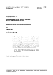 LANDTAG MECKLENBURG-VORPOMMERN Drucksache 6/4180 6. Wahlperiode 04.08.2015 KLEINE ANFRAGE der Abgeordneten Jürgen Suhr und Silke Gajek, Fraktion BÜNDNIS 90/DIE GRÜNEN Rechtliche Grenzen für Dublin-III-Überstellungen und ANTWORT der Landesregierung Die Überstellung eines Asylbewerbers in einen anderen Mitgliedstaat ist nach Artikel 3 Absatz 2 der Dublin-III-Verordnung [Verordnung (EU) Nr. 604/213] unzulässig, wenn es wesentliche Gründe für die Annahme gibt, dass das Asylverfahren und die Aufnahmebedingungen in dem betreffenden Mitgliedstaat systemische Schwachstellen aufweisen. Den- noch wurden im vergangenen Jahr bundesweit über die Hälfte der einer Überstellung vorausgehenden Übernahmeersuchen an Länder gerichtet, in denen aus verwaltungsgerichtlicher Sicht genau dies der Fall ist. Dabei handelte es sich um die Länder Italien (25, 9 Prozent aller Übernahme- ersuchen), Bulgarien (12,5 Prozent), Ungarn (11,1 Prozent), Malta (0,9 Prozent), Rumänien (0,6 Prozent) und Zypern (0,2 Prozent). 1. In welche Länder erfolgten in den Jahren 2011, 2012, 2013 und 2014 wie viele Dublin-II- bzw. Dublin-III-Überstellungen aus Mecklen- burg-Vorpommern? Auf die nachfolgenden Übersichten wird verwiesen. Der Minister für Inneres und Sport hat namens der Landesregierung die Kleine Anfrage mit Schreiben vom 3. August 2015 beantwortet.