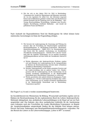 Drucksache 7/3069 Landtag Mecklenburg-Vorpommern - 7. Wahlperiode 8. Wie hat sich in den Jahren 2014 bis 2018 in Mecklenburg- Vorpommern die Anzahl der Migrantinnen und Migranten entwickelt, die von den Agenturen für Arbeit bzw. den Jobcentern insgesamt betreut und in Maßnahmen gefördert wurden (bitte nach Rechtskreisen getrennt darstellen und die Förderung nach Art der Maßnahme - Akti- vierung, Berufsausbildung, Weiterbildung, Aufnahme einer Erwerbs- tätigkeit, Beschäftigung schaffende Maßnahme - und Anzahl der geförderten Frauen und Männer)? Nach Auskunft der Regionaldirektion Nord der Bundesagentur für Arbeit können keine statistischen Auswertungen im Sinne der Fragestellung erfolgen. 9. Wie bewertet die Landesregierung die Umsetzung und Wirkung des Gesetzes über die Feststellung der Gleichwertigkeit ausländischer Berufsqualifikationen in Mecklenburg-Vorpommern (Berufsquali- fikationsfeststellungsgesetz - BQFG M-V) im Zusammenhang mit dem Gesetz über die staatliche Anerkennung von Sozialberufen (Sozialberufe-Anerkennungsgesetz - SobAnG M-V) und der Verord- nung über die staatliche Anerkennung von im Ausland erworbenen Ausbildungsabschlüssen auf dem Gebiet der Sozialberufe (SobAnVO M-V)? a) Welche allgemeinen oder länderspezifischen Probleme ergeben sich nach Kenntnis der Landesregierung für die Antragstellenden im Rahmen der Berufsanerkennung und dem damit verbundenen Verfahren in Mecklenburg-Vorpommern? b) Welchen Änderungsbedarf an den beiden genannten Gesetzen und der Landesverordnung oder an anderen Landes- bzw. Bundes- gesetzen sieht die Landesregierung, um die Anerkennung von im Ausland erworbenen Qualifikationen in der Bundesrepublik Deutschland und in Mecklenburg-Vorpommern zu verbessern? c) Welche gesetzlichen oder anderen Initiativen (Kampagnen, Fonds- einrichtung etc.) will die Landesregierung bezüglich einer verbes- serten Anerkennung von im Ausland erworbenen Qualifikationen in der Bundesrepublik Deutschland und in Mecklenburg- Vorpommern ergreifen? Die Fragen 9, a), b) und c) werden zusammenhängend beantwortet. Im Geschäftsbereich des Ministeriums für Bildung, Wissenschaft und Kultur ergeben sich im Rahmen der Berufsanerkennung für den reglementierten Beruf des Lehrers länderspezifische Merkmale dahingehend, dass ausländische Lehrerausbildungen in der Regel auf nur ein Fach ausgerichtet sind. Das bedeutet, dass diese ausländischen Lehrkräfte für die Anerkennung eines Lehramtes nach den Vorschriften des Landes Mecklenburg-Vorpommern vor Beginn der Ausgleichsmaßnahme entsprechende Studien für das fehlende Fach belegen müssen. Derzeit sind keine Änderungen zum Berufsqualifikationsfeststellungsgesetz vorgesehen. Für den Bereich des Lehrers ist die Lehrerwerbekampagne „Lehrer in MV“ zu nennen. 6