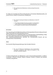 Drucksache 7/671 Landtag Mecklenburg-Vorpommern - 7. Wahlperiode 3. Wie viele Polizisten des Bäderdienstes sind den jeweiligen Einsatzorten zugeteilt? Es erfolgt eine Verteilung der Polizeivollzugsbeamten auf bestimmte Bäderdienststellen, die jeweils für eine Vielzahl von Einsatzorten zuständig sind. 4. Wie wird die Umsetzung der Beamten zum Bäderdienst im Jahr 2017 vollzogen? a) Wie erfolgte die örtliche Umsetzung, das heißt, von welchen Dienst- stellen wurden die Polizisten für den Bäderdienst abgeordnet? b) Wie erfolgt die Auswahl der Polizisten für den Bäderdienst? Zu 4 und a) Die Unterstützung für die Bäderdienststellen des Polizeipräsidiums Rostock erfolgt auch durch andere Dienststellen des Polizeipräsidiums Rostock. Die Unterstützung für die Bäderdienststellen des Polizeipräsidiums Neubrandenburg erfolgt auch durch andere Dienststellen des Polizeipräsidiums Neubrandenburg. Das Landesbereitschaftspolizeiamt unterstützt das Polizeipräsidium Rostock und das Polizeipräsidium Neubrandenburg. Zu b) Die Auswahl erfolgt dienstpostenbezogen ohne besondere Kriterien. 5. Wie viele der Polizisten des Bäderdienstes sind in Gemeinschafts- unterkünften untergebracht (bitte Anzahl der Polizisten in den jeweiligen Unterkünften angeben)? 47 Polizeivollzugsbeamte des Bäderdienstes sind in Gemeinschaftsunterkünften in Ahlbeck (25 Beamte), Altwarp (4 Beamte), Bergen (9 Beamte), Sassnitz (5 Beamte) und Stralsund (4 Beamte) untergebracht. 2