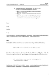Landtag Mecklenburg-Vorpommern - 7. Wahlperiode Drucksache 7/671 6. Werden die Polizisten im Bäderdienst in der Zeit vom 15.05.2017 bis 12.09.2017 ausschließlich im Bäderdienst eingesetzt? a) Wenn ja, wie werden die Arbeitsabläufe an ihren ursprünglichen Dienstorten sichergestellt? b) Wenn nicht, aus welchen Gründen können sie anders eingesetzt werden? c) Wenn nicht, wie oft wurden sie im Jahr 2016 anders eingesetzt (bitte jeweils den Grund, die Anzahl der vom Bäderdienst abbe- rufenen Polizisten und die Dauer der Abberufung angeben)? Nein. Zu a) Entfällt. Zu b) Soweit erforderlich, erfolgt bei besonderen Einsatzlagen (zum Beispiel Großschadenslagen, ad-hoc-Einsatzlagen) der Einsatz des Bäderdienstes lagebedingt priorisiert. Zu c) Im Jahr 2016 erfolgte unter Verweis auf die Antwort zur Frage 6b) keine Abberufung. 7. Wie viele Einsatzstunden sind für den Bäderdienst 2017 vorgesehen? Eine Vorgabe für zu leistende Einsatzstunden für den Bäderdienst 2017 gibt es nicht. Die Dienstzeiten ergeben sich aus der lageabhängigen Schichtplanung in den Bäderdienststellen. 8. In welchem Zeitraum werden Beamte der Bereitschaftspolizei im Bäderdienst im Jahr 2017 eingesetzt? Im Zeitraum 13.07.2017 bis 12.09.2017 werden Polizeivollzugsbeamte des Landesbereit- schaftspolizeiamtes Mecklenburg-Vorpommern im Bäderdienst eingesetzt. 3