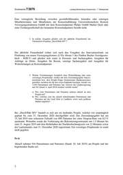 Drucksache 7/3876 Landtag Mecklenburg-Vorpommern - 7. Wahlperiode 6. Welches Szenario war von Anfang an oder wurde zwischenzeitlich mit dem Zuwendungsgeber bzw. dem Projekt-Träger Gemeinsamer Bundesausschuss für den Fall des vorzeitigen Endes und der Abwick- lung des Projektes vereinbart? In welcher Höhe entstehen welchen Beteiligten möglicherweise welche Abwicklungskosten? Ein vorzeitiges Ende des Projektes ist nicht vereinbart. Das Projekt läuft wie ursprünglich geplant bis zum 31. Dezember 2020. Das aktuelle genehmigte Szenario ist in der Antwort zu Frage 3 dargestellt worden. Aktuell sind keine Abwicklungskosten bekannt. 7. Wie viele Mitarbeiterinnen und Mitarbeiter, inklusive der Leitung des Projektes, arbeiten im Herzeffekt-Projektteam? a) Wie stellt sich die Aufgabenstruktur im Projektteam mit den dazu- gehörigen Arbeitsplätzen dar (bitte Vollzeit- bzw. Teilzeit mit dem entsprechenden Stundenumfang darstellen)? b) Welche der Stellen im Team werden tarifgemäß nach welchem Tarifvertrag und welche Stellen werden außertariflich bezahlt? c) Für welche Stellen im Projekt sind Honorarverträge an die Gesamtlaufzeit des Projektes bzw. für welche Dauer gebunden? Auf Seiten der Konsortialführung arbeiten 11 Mitarbeiterinnen und Mitarbeiter, inklusive der Projektleitung, im HerzEffekt MV-Projektteam. Zu a) Die Aufgabenstruktur der Konsortialführung ist gemäß den Förderrichtlinien des Innovations- fonds zur Förderung von neuen Versorgungsformen (§ 92a des Fünften Buches Sozialgesetz- buch – SGB V) wie folgt in Bereichen aufgebaut (Hinweis: VK = Vollkraft): Projektleitung: 1x Projektleitung, die nicht über Projektmittel finanziert wird und daher nicht in VK angegeben werden kann. Projektadministration: 1x 1,00 VK = 39,0 h/Woche 1x 1,00 VK = 39,0 h/Woche Gesundheitliche Versorgungsleistung: 1x 1,00 VK = 39,0 h/Woche 1x 1,00 VK = 39,0 h/Woche 1x 1,00 VK = 39,0 h/Woche (bis 31. Juli 2019) 1x 0,90 VK = 35,0 h/Woche 1x 0,75 VK = 30,0 h/Woche 1x 0,75 VK = 30,0 h/Woche 1x 0,50 VK = 19,5 h/Woche (Beschäftigungsverbot) 6