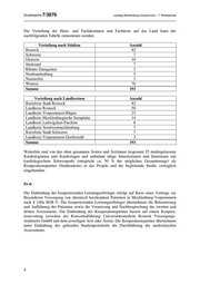 Drucksache 7/3876 Landtag Mecklenburg-Vorpommern - 7. Wahlperiode Die Verteilung der Haus- und Fachärztinnen und Fachärzte auf das Land kann der nachfolgenden Tabelle entnommen werden: Verteilung nach Städten Anzahl Rostock 82 Schwerin 7 Güstrow 10 Stralsund 7 Ribnitz-Damgarten 3 Neubrandenburg 5 Neustrelitz 3 Weitere 76 Summe 193 Verteilung nach Landkreisen Anzahl Kreisfreie Stadt Rostock 82 Landkreis Rostock 50 Landkreis Vorpommern-Rügen 23 Landkreis Mecklenburgische Seenplatte 14 Landkreis Ludwigslust-Parchim 8 Landkreis Nordwestmecklenburg 7 Kreisfreie Stadt Schwerin 7 Landkreis Vorpommern-Greifswald 2 Summe 193 Weiterhin sind von den oben genannten Ärzten und Ärztinnen insgesamt 25 niedergelassene Kardiologinnen und Kardiologen und ambulant tätige Internistinnen und Internisten mit kardiologischem Schwerpunkt (entspricht ca. 50 % der möglichen Gesamtmenge) als Kooperationspartner (Studienärzte) in das Projekt und die begleitende Studie vertraglich eingebunden. Zu a) Die Einbindung der kooperierenden Leistungserbringer erfolgt auf Basis eines Vertrags zur Besonderen Versorgung von chronisch herzkranken Patienten in Mecklenburg-Vorpommern nach § 140a SGB V. Die kooperierenden Leistungserbringer übernehmen die Rekrutierung und Aufklärung der Patienten sowie die Vernetzung und Nachbesprechung der zweiten und dritten Assessments. Die Einbindung der Kooperationspartner basiert auf einem Koopera- tionsvertrag zwischen der Konsortialführung Universitätsmedizin Rostock Versorgungs- strukturen GmbH und dem jeweiligen Arzt oder Ärztin. Die Kooperationspartner übernehmen unter Einhaltung des geltenden Studienprotokolls die Durchführung der medizinischen Assessments. 4