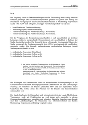 Landtag Mecklenburg-Vorpommern - 7. Wahlperiode Drucksache 7/3876 Zu b) Die Vergütung wurde als Dokumentationspauschale im Förderantrag berücksichtigt und vom Förderer genehmigt. Die Dokumentationspauschale gliedert sich gemäß dem Vertrag zur Besonderen Versorgung von chronisch herzkranken Patienten in Mecklenburg-Vorpommern nach § 140a SGB V nach erfolgter Leistung pro Versicherten pro Fall wie folgt auf: - Identifikation und Terminvereinbarung - Aufklärungsgespräch und Einschreibung - Terminvereinbarung und Nachbesprechung (2. Assessment) - Terminvereinbarung und Nachbesprechung (3. Assessment). Bei der Vergütung der Kooperationspartner handelt es sich ausschließlich um ärztliche Leistungen (inklusive entsprechende Dokumentation), die ausschließlich im Rahmen der Studie durchgeführt werden. Die Kosten für die zu erbringenden Leistungen im Rahmen der Studie werden nach der Gebührenordnung für Ärzte (GOÄ) berechnet und sind vom Förderer genehmigt worden. Um folgende studienrelevanten medizinischen Leistungen (gemäß Studienprotokoll) handelt es sich: 1. medizinisches Assessment (Einschluss) 2. medizinisches Assessment (follow-up 1) 3. medizinisches Assessment (follow-up 2). 5. Auf welcher rechtlichen Grundlage erfolgt die Weitergabe der Patien- tendaten von den Ärztinnen und Ärzten an die Universitätsmedizin Rostock Versorgungsstrukturen GmbH als Durchführende des Projek- tes bzw. an das Projekt selbst? Inwieweit wurde der Landesbeauftragte für Datenschutz und Informa- tionsfreiheit des Landes Mecklenburg-Vorpommern in diesem Zusammenhang einbezogen, konsultiert oder informiert? Die Weitergabe von Patientendaten durch die kooperierenden Leistungserbringer an die Universitätsmedizin Rostock Versorgungsstrukturen GmbH basiert auf einer Einwilligungs- erklärung zur Teilnahme am Projekt „HerzEffekt MV“ und der begleitenden Studie CardioCare MV, welche durch den Patienten vor der Projekt- und Studienteilnahme unterzeichnet wird. Der Landesbeauftragte für Datenschutz und Informationsfreiheit des Landes Mecklenburg- Vorpommern wurde seit Projektbeginn und wird immer noch regelmäßig in diesem Zusammenhang einbezogen, konsultiert und informiert. Sämtliche Unterlagen zum Projekt sind dem Landesbeauftragten für Datenschutz und Informationsfreiheit des Landes Mecklenburg-Vorpommern zur Prüfung vorgelegt worden. 5