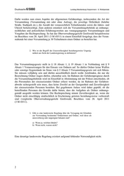 Drucksache 6/5880 Landtag Mecklenburg-Vorpommern - 6. Wahlperiode Dafür werden zum einen Aspekte der allgemeinen Gefahrenlage, insbesondere die Art der Versammlung (Versammlung mit oder ohne Aufzug), die jeweilige Örtlichkeit (belebte Straße, Stadtpark etc.), die Anzahl der voraussichtlich Teilnehmenden sowie die Jahres- und Uhrzeit berücksichtigt. Zum anderen orientiert sich die Versammlungsbehörde an ordnungs- rechtlichen und polizeilichen Erfahrungswerten aus vorangegangenen Versammlungen und Vorgaben der Rechtsprechung. So hat das Oberverwaltungsgericht Greifswald beispielsweise im Beschluss vom 28. April 2011 (3 M 45/11) in einem Einzelfall festgelegt, dass der Veran- staltende bei einer Versammlung je 30 Teilnehmern einen Ordner zu bestellen hat. 2. Wie ist der Begriff der Unzuverlässigkeit beziehungsweise Ungeeig- netheit aus Sicht der Landesregierung zu definieren? Das Versammlungsgesetz stellt in § 18 Absatz 1, § 19 Absatz 1 in Verbindung mit § 9 Absatz 1 Voraussetzungen für den Einsatz von Ordnern auf. So dürfen Ordner keine Waffen oder sonstige Gegenstände im Sinne von § 2 Absatz 3 Versammlungsgesetz mit sich führen. Sie müssen volljährig sein und dürfen ausschließlich durch weiße Armbinden, die nur die Bezeichnung Ordner tragen dürfen, erkennbar sein. Im Rahmen der Gefahrenprognose durch die Versammlungsbehörde wird im Einzelfall in Abstimmung mit der Polizei entschieden, ob die Personalien der einzusetzenden Ordner erfasst werden, da im Rahmen der Gefahren- abwehr sichergestellt sein muss, dass keine Zweifel an der Geeignetheit und Zuverlässigkeit der einzusetzenden Personen bestehen. Bei gegebenem Anlass wird daher geprüft, ob die betreffenden Personen die Gewähr dafür bieten, dass die Aufgaben als Ordner ordnungs- gemäß ausgeübt werden können. Die Rechtsprechung nimmt Zuverlässigkeit an, wenn die Ordner nicht einschlägig strafrechtlich in Erscheinung getreten beziehungsweise vorbestraft sind (vergleiche Oberverwaltungsgericht Greifswald, Beschluss vom 28. April 2011 (3 M 45/11). 3. Gibt es eine landesweite Regelung über die Versagung der Erlaubnis zur Verwendung bestimmter Ordnerinnen und Ordner, weil diese als unzuverlässig oder ungeeignet bekannt sind? a) Wenn ja, welchen Inhalts? b) Wenn nicht, warum nicht? Eine derartige landesweite Regelung existiert aufgrund fehlender Notwendigkeit nicht. 2