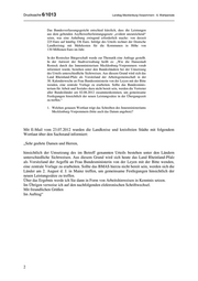 Drucksache 6/1013 Landtag Mecklenburg-Vorpommern - 6. Wahlperiode Das Bundesverfassungsgericht entschied kürzlich, dass die Leistungen aus dem geltenden Asylbewerberleistungsgesetz „evident unzureichend“ seien, was eine Anhebung zwingend erforderlich mache: von derzeit 225 Euro auf künftig 336 Euro. Infolge des Urteils rechnet der Deutsche Landkreistag mit Mehrkosten für die Kommunen in Höhe von 130 Millionen Euro im Jahr. In der Rostocker Bürgerschaft wurde zur Thematik eine Anfrage gestellt. In der Antwort der Stadtverwaltung heißt es: „Wie die Hansestadt Rostock durch das Innenministerium Mecklenburg-Vorpommern vorab informiert wurde, bestehen unter den Bundesländern bei der Umsetzung des Urteils unterschiedliche Sichtweisen. Aus diesem Grund wird sich das Land Rheinland-Pfalz als Vorsitzland der Arbeitsgemeinschaft in der 30. Kalenderwoche an Frau Bundesministerin von der Leyen mit der Bitte wenden, eine zentrale Vorlage zu erarbeiten. Sollte das Bundesminis- terium für Arbeit und Soziales dazu nicht bereit sein, werden die Vertreter aller Bundesländer am 02.08.2012 zusammenkommen, um gemeinsame Festlegungen hinsichtlich der neuen Leistungssätze in der Übergangszeit zu treffen.“ 1. Welchen genauen Wortlaut trägt das Schreiben des Innenministeriums Mecklenburg-Vorpommern (bitte auch das Datum angeben)? Mit E-Mail vom 23.07.2012 wurden die Landkreise und kreisfreien Städte mit folgendem Wortlaut über den Sachstand informiert: „Sehr geehrte Damen und Herren, hinsichtlich der Umsetzung des im Betreff genannten Urteils bestehen unter den Ländern unterschiedliche Sichtweisen. Aus diesem Grund wird sich heute das Land Rheinland-Pfalz als Vorsitzland der Argeflü an Frau Bundesministerin von der Leyen mit der Bitte wenden, eine zentrale Vorlage zu erarbeiten. Sollte das BMAS hierzu nicht bereit sein, werden sich die Länder am 2. August d. J. in Mainz treffen, um gemeinsame Festlegungen hinsichtlich der neuen Leistungssätze zu treffen. Über das Ergebnis werde ich Sie dann in Form von Arbeitshinweisen in Kenntnis setzen. Im Übrigen verweise ich auf den nachfolgenden elektronischen Schriftwechsel. Mit freundlichen Grüßen Im Auftrag“ 2