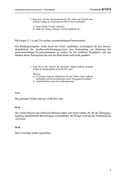 Landtag Mecklenburg-Vorpommern - 6. Wahlperiode Drucksache 6/1013 2. Inwieweit wird das Bundesministerium für Arbeit und Soziales eine zentrale Vorlage zur Umsetzung des BVG-Urteils erarbeiten? a) Wann soll die Vorlage vorliegen? b) Sollte die Vorlage vorliegen, welchen Inhalt hat sie? Die Fragen 2, 2 a) und 2 b) werden zusammenhängend beantwortetet. Der Bundesgesetzgeber wurde durch das Urteil verpflichtet, unverzüglich für den Anwen- dungsbereich des Asylbewerberleistungsgesetzes eine Neuregelung zur Sicherung des menschenwürdigen Existenzminimums zu treffen. Zu der zeitlichen Perspektive und den Inhalten dieser Neuregelung hat sich der Bund bisher noch nicht geäußert. 3. Fand das in der Antwort der Rostocker Stadtverwaltung genannte Treffen der Bundesländer am 02.08.2012 statt? Wenn ja, a) zu welchen konkreten Ergebnissen hat das Treffen (unter anderem im Hinblick auf die Leistungssätze in der Übergangszeit) geführt? b) welche Position vertrat die Landesregierung? Nein. Das genannte Treffen fand am 13.08.2012 statt. Zu a) Die Länder Bayern und Schleswig-Holstein haben sich bereit erklärt, die für die Übergangs- regelung erforderlichen Berechnungen vorzunehmen. Im Übrigen wird auf die Vorbemerkung verwiesen. Zu b) Dem Vorschlag wurde zugestimmt. 3