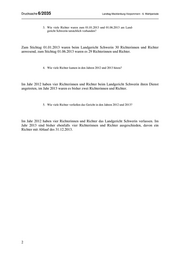 LANDTAG MECKLENBURG-VORPOMMERN Drucksache 6/2035 6. Wahlperiode 05.07.2013 KLEINE ANFRAGE der Abgeordneten Barbara Borchardt, Fraktion DIE LINKE Richtersituation beim Landgericht Schwerin und ANTWORT der Landesregierung 1. Wie viele Richterplanstellen waren 2012 und 2013 für das Land- gericht Schwerin vorgesehen? Dem Landgericht Schwerin waren im Jahr 2012 28 Richterplanstellen zugewiesen. Im Jahr 2013 verfügt das Landgericht Schwerin über 26 Richterplanstellen. 2. Wie viele Richterpensen waren nach Pebb§y zum 01.01.2013 und 01.06.2013 für das Landgericht Schwerin erforderlich? Der Personalbedarf von Gerichten und Staatsanwaltschaften wird halbjährlich zum 30.06. und zum 31.12. eines Jahres erhoben. Im Jahr 2012 (Stichtag 31.12.2012) hatte das Landgericht Schwerin einen Personalbedarf nach Pebb§y von 23,93 Richterpensen. Zum Stichtag 01.06.2013 fehlt es an einer gesonderten Ermittlung des Personalbedarfs. Die Daten, aus denen der Personalbedarf für das 1. Halbjahr 2013 ermittelt wird, werden erst nach Ende des bis zum 30.06.2013 laufenden Erhebungszeit- raums vom Geschäftsbereich angefordert und erhoben. Die Justizministerin hat namens der Landesregierung die Kleine Anfrage mit Schreiben vom 4. Juli 2013 beantwortet.