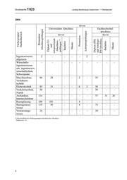 Drucksache 7/823 Landtag Mecklenburg-Vorpommern - 7. Wahlperiode 2004 davon Universitärer Abschluss Fachhochschul- Bestandene abschluss Lehramtsprüfungen Fächergruppe/ davon davon Promotion Diplom (U) Diplom (FH) Studienbereich Abschlussprüfungen Bachelor Bachelor und entsprechende Master und sonstiger Master Abschluss- prüfungen 1) FH-Abschluss Ingenieurwesen 2 - - - - 2 - - - allgemein Wirtschafts- - - - - - - - - - ingenieurwesen mit ingenieurwis- senschaftlichem Schwerpunkt Maschinenbau, 86 29 - - 2 - 55 - - Verfahrens- technik Elektrotechnik 85 21 - - 6 2 56 - - Verkehrstechnik, 50 - - - - - 50 - - Nautik Architektur, 114 - - - - - 57 31 26 Innenarchitektur Raumplanung 109 105 - - 4 - - - - Bauingenieur- 119 40 - - 4 - 75 - - wesen Vermessungs- 24 - - - - - 24 - - wesen 1) Einschließlich der Prüfungsgruppen künstlerischer Abschluss - Zahlenwert = 0 4