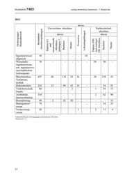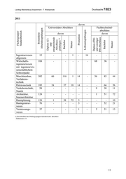 Drucksache 7/823 Landtag Mecklenburg-Vorpommern - 7. Wahlperiode 2012 davon Universitärer Abschluss Fachhochschul- Bestandene abschluss Lehramtsprüfungen Fächergruppe/ davon davon Promotion Diplom (U) Diplom (FH) Studienbereich Abschlussprüfungen Bachelor Bachelor und Master und sonstiger Master entsprechende Abschluss- prüfungen 1) FH-Abschluss Ingenieurwesen 10 - - - - 10 - - - allgemein Wirtschafts- 78 - - - - - 28 50 - ingenieurwesen mit ingenieurwis- senschaftlichem Schwerpunkt Maschinenbau, 457 86 132 24 14 - 20 138 43 Verfahrens- technik Elektrotechnik 224 23 39 45 10 - - 54 53 Verkehrstechnik, 60 - - 2 - - 1 44 13 Nautik Architektur, 154 - - - - - 2 62 90 Innenarchitektur Raumplanung 98 2 35 38 - - - - 23 Bauingenieur- 79 - - - - - - 54 25 wesen Vermessungs- 20 - - - 1 - 2 13 4 wesen 1) Einschließlich der Prüfungsgruppen künstlerischer Abschluss - Zahlenwert = 0 12