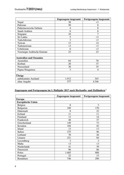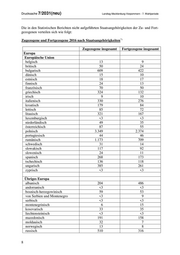 Drucksache 7/2031(neu) Landtag Mecklenburg-Vorpommern - 7. Wahlperiode Zugezogene insgesamt Fortgezogene insgesamt Nepal 30 <3 Pakistan 50 8 Palästinensische Gebiete 4 8 Saudi-Arabien 6 6 Singapur 10 7 Sri Lanka 5 <3 Tadschikistan 3 <3 Taiwan 13 14 Turkmenistan <3 <3 Usbekistan 6 <3 Vereinigte Arabische Emirate 23 23 Australien und Ozeanien Australien 64 70 Kiribati 20 37 Neuseeland 30 35 Papua-Neuguinea 3 4 Übrige unbekanntes Ausland 1.912 343 ohne Angabe 577 4.346 *) Zugezogene und Fortgezogene im 1. Halbjahr 2017 nach Herkunfts- und Zielländern Zugezogene insgesamt Fortgezogene insgesamt Europa Europäische Union Belgien 8 3 Bulgarien 349 170 Dänemark 8 22 Estland 11 11 Finnland 13 14 Frankreich 48 37 Griechenland 149 73 Kroatien 104 42 Irland 13 13 Italien 275 96 Lettland 70 26 Litauen 221 84 Luxemburg 3 3 Malta <3 <3 Niederlande 41 39 Österreich 96 86 Polen 1.685 888 Portugal 22 15 Rumänien 746 290 4