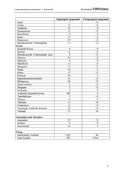 Landtag Mecklenburg-Vorpommern - 7. Wahlperiode Drucksache 7/2031(neu) Zugezogene insgesamt Fortgezogene insgesamt Japan 7 13 Jemen <3 <3 Jordanien 22 8 Kambodscha <3 <3 Kasachstan 4 9 Katar <3 <3 Kirgisistan 12 <3 Demokratische Volksrepublik <3 <3 Kongo Republik Korea 6 9 Kuweit <3 <3 Demokratische Volksrepublik Laos 5 <3 Libanon 53 <3 Malaysia 8 4 Malediven <3 <3 Mongolei <3 <3 Nepal 10 5 Oman <3 <3 Pakistan 36 3 Palästinensische Gebiete <3 <3 Philippinen 88 74 Saudi-Arabien 3 <3 Singapur 5 <3 Sri Lanka 3 3 Arabische Republik Syrien 649 9 Tadschikistan 3 <3 Taiwan <3 7 Thailand 15 10 Usbekistan <3 <3 Vereinigte Arabische Emirate 12 <3 Vietnam 35 16 Australien und Ozeanien Australien 25 23 Kiribati 9 9 Neuseeland 16 7 Übrig unbekanntes Ausland 1.185 48 ohne Angabe 297 1.514 7