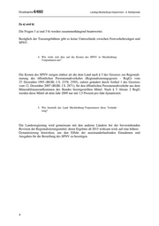Drucksache 6/692 Landtag Mecklenburg-Vorpommern - 6. Wahlperiode Zu a) und b) Die Fragen 3 a) und 3 b) werden zusammenhängend beantwortet. Bezüglich der Trassengebühren gibt es keine Unterschiede zwischen Fernverkehrszügen und SPNV. 4. Wie wirkt sich dies auf die Kosten des SPNV in Mecklenburg- Vorpommern aus? Die Kosten des SPNV steigen stärker als die dem Land nach § 5 des Gesetzes zur Regionali- sierung des öffentlichen Personennahverkehrs (Regionalisierungsgesetz - RegG) vom 27. Dezember 1993 (BGBl. I S. 2378, 2395), zuletzt geändert durch Artikel 1 des Gesetzes vom 12. Dezember 2007 (BGBl. I S. 2871), für den öffentlichen Personennahverkehr aus dem Mineralölsteueraufkommen des Bundes bereitgestellten Mittel. Nach § 5 Absatz 2 RegG werden diese Mittel ab dem Jahr 2009 nur mit 1,5 Prozent pro Jahr dynamisiert. 5. Wie beurteilt das Land Mecklenburg-Vorpommern diese Verände- rung? Die Landesregierung wird gemeinsam mit den anderen Ländern bei der bevorstehenden Revision der Regionalisierungsmittel, deren Ergebnis ab 2015 wirksam wird, auf eine höhere Dynamisierung hinwirken, um den Effekt der auseinanderlaufenden Einnahmen und Ausgaben für die Bestellung des SPNV zu beseitigen. 4