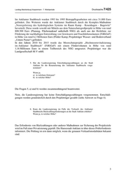 Drucksache 7/425 Landtag Mecklenburg-Vorpommern - 7. Wahlperiode Das Ministerium für Inneres und Europa als oberste Rechtsaufsichtsbehörde wird ohne konkreten Anlass weder über die Vermögensveräußerungen im kreisangehörigen Raum informiert, noch holt es sich aktiv Informationen hierüber ein. Hinsichtlich der erwogenen Grundstücksveräußerung der Hansestadt Anklam liegen dem Ministerium für Inneres und Europa auch keine konkreten prüffähigen Unterlagen vor. Im Übrigen wird auf die Antwort zu Frage 3 verwiesen. 2. Welche Position hat die Landesregierung zum durch die Stadt Anklam angedachten Verkauf kommunaler Grundstücke? Nach Auffassung der Landesregierung sollten Flächen in einem Naturschutzgebiet (NSG) mit bundesweiter und internationaler Bedeutung nach Möglichkeit nicht privatisiert und folglich sollte nach Alternativen zur Privatisierung gesucht werden. 3. Bezieht die Landesregierung Stellung zur geplanten Veräußerung der kommunalen Grundstücke durch die Stadt Anklam? a) Wenn ja, auf welche Weise? b) Wenn nicht, warum nicht? Die Fragen 3, a) und b) werden zusammenhängend beantwortet. Die geplante Veräußerung der kommunalen Grundstücke unterliegt grundsätzlich der Entscheidungshoheit der Hansestadt Anklam. Die Landesregierung sucht zeitnah das Gespräch mit der Hansestadt Anklam und wird dann entscheiden, ob und wie sie zu dem Sachverhalt Stellung bezieht. 4. In welcher Höhe sind seit 1990 Fördermittel des Landes für die Renaturierung des Anklamer Stadtbruchs gezahlt worden? Der Anklamer Stadtbruch liegt im Kerngebiet des Naturschutzgroßprojektes „Peenetal/Peene- Haff-Moor“. Dieses Naturschutzgroßprojekt hatte eine Laufzeit von 1992 bis 2009. Das Gesamtfördervolumen betrug 31,27 Millionen Euro, davon circa 73 Prozent Bund, 20 Prozent Land sowie 7 Prozent kommunaler Eigenanteil. Projektträger war der Zweckverband Peenetallandschaft e. V. 2