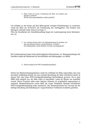 LANDTAG MECKLENBURG-VORPOMMERN Drucksache 6/742 6. Wahlperiode 15.06.2012 KLEINE ANFRAGE der Abgeordneten Dr. Ursula Karlowski, Fraktion BÜNDNIS 90/DIE GRÜNEN Munitionssprengung in der Ostsee und ANTWORT der Landesregierung Am 25. April 2012 wurde vor Ahrenshoop in der Ostsee eine britische Luftmine aus dem Zweiten Weltkrieg, mit einem Sprengladungsgewicht von ca. 300 kg, in der Nähe der Kabeltrasse des geplanten Offshore- Windparks Baltic 2 gesprengt. Diese Mine wurde bei Arbeiten an der Kabeltrasse am 18. März 2012 gefunden und anschließend an den ca. 3 km entfernten Sprengort verbracht, um sie hier zu entschärfen. Bei dem betreffenden Küstenabschnitt vor Ahrenshoop handelt es sich um das FFH-Meeresschutzgebiet „Darßer Schwelle“. Für eine Sprengung im Schutzgebiet oder dessen Umgebung, ist eine FFH-Verträglichkeits- prüfung zwingend erforderlich. Lediglich bei Gefahr im Verzug kann hierauf verzichtet werden. Von der Entdeckung der Mine bis zu ihrer Sprengung vergingen jedoch mehr als 5 Wochen. Berufsschifffahrt findet im betroffenen Bereich nicht statt. Die Absperrung für weitere Fahrzeuge erfolgte am 28. März 2012 mittels Einzelgefahrentonne und einer Bekanntmachung für Seefahrer (siehe http://www.elwis.de/BfS/bfs_start. php?target=3&source=2&db_id=45436). Bei Unterwassersprengungen entsteht eine Schockwelle, die bei einer 300-kg-Sprengladung, wie im vorliegenden Fall, bei Meeressäugern noch in 4 km Entfernung zu lebens- gefährlichen Verletzungen, wie Lungenrissen führen kann. Hörschäden sind in einem noch größeren Gefahrenbereich zu erwarten. Durch den Einsatz vorhandener deutscher Technik (Blasenschleier), wie sie regel- mäßig seit Jahren in schleswig-holsteinischen Küstengewässern bei ähn- lichen Sprengungen zum Einsatz kommt, kann der Gefahrenradius für Meeressäugetiere, tauchende Vögel und Fische um etwa 90 % verringert werden. Der Minister für Inneres und Sport hat namens der Landesregierung die Kleine Anfrage mit Schreiben vom 14. Juni 2012 beantwortet.
