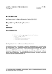 LANDTAG MECKLENBURG-VORPOMMERN Drucksache 7/2402 7. Wahlperiode 03.08.2018 KLEINE ANFRAGE der Abgeordneten Dr. Mignon Schwenke, Fraktion DIE LINKE Erdgasförderung in Mecklenburg-Vorpommern und ANTWORT der Landesregierung 1. Wie bewertet die Landesregierung grundsätzlich neue Vorhaben zur Förderung von Erdgas und Erdöl a) insgesamt, b) im Besonderen in Tourismusregionen oder c) in der Nähe von Naturschutzgebieten? Die Fragen 1, a), b) und c) werden zusammenhängend beantwortet. Die Rohstoffgewinnung in Mecklenburg-Vorpommern hat grundsätzlich so zu erfolgen, dass die Belastungen für Natur, Umwelt und Tourismus möglichst gering gehalten werden. Im von der Landesregierung beschlossenen Landesraumentwicklungsprogramm Mecklenburg- Vorpommern (LEP M-V) wurde aus diesen Gründen eine Förderung von Erdöl und Erdgas im Küstenmeer ausgeschlossen. In den Genehmigungsverfahren für rohstofffördernde Vorhaben werden die zuvor aufgeführten Belange entsprechend berücksichtigt, umfänglich geprüft und fließen bei der Entscheidungsfindung mit ein. Der Minister für Energie, Infrastruktur und Digitalisierung hat namens der Landesregierung die Kleine Anfrage mit Schreiben vom 2. August 2018 beantwortet.