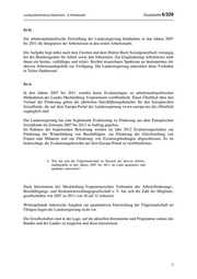 Landtag Mecklenburg-Vorpommern - 6. Wahlperiode Drucksache 6/329 Zu b) Die arbeitsmarktpolitische Zielstellung der Landesregierung beinhaltete in den Jahren 2007 bis 2011 die Integration der Arbeitslosen in den ersten Arbeitsmarkt. Die Aufgabe liegt dabei nach dem Zweiten und dem Dritten Buch Sozialgesetzbuch vorrangig bei der Bundesagentur für Arbeit sowie den Jobcentern. Zur Eingliederung Arbeitsloser steht ihnen ein breites, vielfältiges und relativ flexibel einsetzbares Spektrum an Instrumenten der aktiven Arbeitsmarktpolitik zur Verfügung. Die Landesregierung unterstützt diese Vorhaben in Teilen flankierend. Zu c) In den Jahren 2007 bis 2011 wurden keine Evaluierungen zu arbeitsmarktpolitischen Maßnahmen des Landes Mecklenburg-Vorpommern veröffentlicht. Einen Überblick über den Verlauf der Förderung geben die jährlichen Durchführungsberichte für den Europäischen Sozialfonds, die auf dem Europa-Portal der Landesregierung (www.europa-mv.de) öffentlich zugänglich sind. Die Landesregierung hat eine begleitende Evaluierung zu Förderung aus dem Europäischen Sozialfonds im Zeitraum 2007 bis 2013 in Auftrag gegeben. Im Rahmen der begleitenden Bewertung werden im Jahr 2012 Evaluierungsstudien zur Förderung der Weiterbildung von Beschäftigten, zur Förderung der Gleichstellung von Frauen und Männern und zur Förderung von Existenzgründungen abgeschlossen. Es ist beabsichtigt, die Evaluierungsberichte auf dem Europa-Portal zu veröffentlichen. 4. Wie hat sich die Trägerlandschaft im Bereich der aktiven Arbeits- marktpolitik in den Jahren 2007 bis 2011 im Land quantitativ und qualitativ entwickelt? Nach Information des Mecklenburg-Vorpommerschen Verbandes der Arbeitsförderungs-, Beschäftigungs- und Strukturentwicklungsgesellschaft e. V. hat sich die Zahl der Mitglieds- gesellschaften von 2007 zu 2011 von 36 auf 31 reduziert. Weitergehende statistische Angaben zur quantitativen Entwicklung der Trägerlandschaft im Übrigen liegen der Landesregierung nicht vor. Die Gesellschaften sind in der Lage, auf die aktuellen Instrumente und Programme seitens des Bundes und des Landes zu reagieren und diese umzusetzen. 7