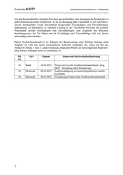 LANDTAG MECKLENBURG-VORPOMMERN Drucksache 6/4277 6. Wahlperiode 23.09.2015 KLEINE ANFRAGE des Abgeordneten David Petereit, Fraktion der NPD Polizeieinsätze in Unterkünften für Asylbewerber und/oder Asylanten im Landkreis Vorpommern-Rügen im Monat Januar 2015 und ANTWORT der Landesregierung Wie viele Polizeieinsätze gab es im o. g. Monat in Unterkünften für Asylbewerber und/oder Asylanten im Landkreis Vorpommern-Rügen (bitte aufschlüsseln nach Ort und Art der Unterkunft, Datum, Anlass mit Sachverhaltsskizzierung, Staatsangehörigkeit, Alter und Geschlecht der Tatverdächtigen/Störer und Geschädigten und entstandenen Kosten)? In den kommunalen Gemeinschaftsunterkünften des Landkreises Vorpommern-Rügen gab es im Januar 2015 insgesamt drei Polizeieinsätze. Diese sind in der beigefügten Übersicht aufgelistet. Maßnahmen im Rahmen der Amtshilfe sind nicht enthalten. Einsätze, welche im Zusammenhang mit dezentral untergebrachten Asylbewerberinnen und Asylbewerbern standen, werden nicht separat erfasst. Personal- und Sachkosten werden für die angefragte Art der polizeilichen Einsätze regelmäßig nicht erhoben. Angaben zu Alter, Geschlecht und Staatsangehörigkeit der Beteiligten werden nicht aufge- führt. Es handelt sich dabei um Angaben, vor deren Veröffentlichung eine datenschutz- rechtliche Prüfung dahingehend vorzunehmen wäre, ob, gegebenenfalls auch in der Kombina- tion mit anderen Informationen aus den Antworten, einzelne Personen bestimmbar gemacht werden können. Der Minister für Inneres und Sport hat namens der Landesregierung die Kleine Anfrage mit Schreiben vom 22. September 2015 beantwortet.
