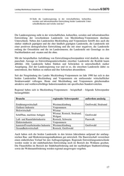 Landtag Mecklenburg-Vorpommern - 6. Wahlperiode Drucksache 6/3870 18. Sieht die Landesregierung in der wirtschaftlichen, kulturellen, sozialen und infrastrukturellen Entwicklung beider Landesteile Unter- schiedlichkeiten und welche sind das? Die Landesregierung sieht in der wirtschaftlichen, kulturellen, sozialen und infrastrukturellen Entwicklung der verschiedenen Landesteile von Mecklenburg-Vorpommern durchaus Unterschiede. Neben den Landesteilen Mecklenburg und Vorpommern betrifft dies auch die stärker städtisch geprägten und die eher ländlich geprägten Landesteile, die Landesteile mit einer positiven demografischen Entwicklung und die mit einer negativen, die Landesteile entlang der Ostseeküste und die im Landesinneren, die Landesteile mit Grenzlage zu den Nachbarländern und -staaten und die ohne. Mit der beispielhaften Aufzählung von Entwicklungsschwerpunkten wird deutlich, dass eine pauschale Aussage zu Entwicklungsunterschieden einzelner Landesteile die Realität kaum abbildet. Alle Landesteile haben Stärken und Schwächen in unterschiedlich starker Ausprägung. Ziel der Landesregierung war und ist es, die einzelnen Landesteile dabei zu unterstützen, ihre Stärken zu stärken und ihre Schwächen abzumildern. Seit der Neugründung des Landes Mecklenburg-Vorpommern im Jahr 1990 hat sich in den beiden Landesteilen Mecklenburg und Vorpommern ein umfassender wirtschaftlicher Strukturwandel vollzogen. Heute sind Mecklenburg und Vorpommern gleichermaßen attraktive und wettbewerbsfähige Industriestandorte mit spezifischen Standortvorteilen. Regional haben sich in Mecklenburg-Vorpommern - beispielhaft - folgende Schwerpunkte herausgebildet: Branche regionaler Schwerpunkt außerdem ansässig Ernährungswirtschaft Westmecklenburg Greifswald, Stralsund Gießerei-Industrie Vorpommern Holzwirtschaft Wismar Wismar, Rostock, Stralsund, Schiffbau, maritime Anlagen Greifswald Wolgast Luft- und Raumfahrtindustrie Rostock, Schwerin Pasewalk Elektroindustrie Vorpommern kunststoffverarbeitenden Industrie Westmecklenburg Greifswald Gesundheitswirtschaft Rostock, Greifswald Auch haben sich die beiden Landesteile in den letzten Jahrzehnten aufgrund der umfang- reichen Bau- und Modernisierungsmaßnahmen gut entwickelt. Die Bauwirtschaft verzeichnet einen einheitlichen Verlauf bei den Auftragseingängen. Regionale Entwicklungsunterschiede werden weder in der städtebaulichen Entwicklung noch im Bereich des Wohnens gesehen. Die Finanzhilfen im Bereich der Städtebauförderung und der nachhaltigen Stadtentwicklung sowie der Wohnraumförderung werden regional ausgewogen vergeben. 17