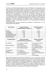 Drucksache 6/3870 Landtag Mecklenburg-Vorpommern - 6. Wahlperiode Der Tourismus in Mecklenburg-Vorpommern nimmt als Wirtschafts- und Imagefaktor für das ganze Land eine herausragende Stellung ein. Dabei zeichnen sich im touristischen Bereich keine Unterschiede zwischen den beiden Landesteilen ab. In den vergangenen 25 Jahren ist durchgängig eine positive Entwicklung zu konstatieren, die allenfalls von einer unterschied- lichen Dynamik im Küstenstreifen gegenüber dem Binnenland geprägt war. Mit etwa 70 Prozent der Übernachtungen ist die Küste das besucher-, übernachtungs- und umsatzstärkste touristische Reiseziel, das auch in der Intensität international konkurrenzfähig ist. Im Binnenland bieten Landurlaub und landtouristische Angebote im engeren Sinne ein ergänzendes Entwicklungs- und Profilierungspotenzial für den Tourismus in Mecklenburg- Vorpommern. Um die Entwicklung im ländlichen Raum voranzutreiben, wurde die Projektidee LandART Mecklenburg-Vorpommern vom Tourismusverband Mecklenburg- Vorpommern initiiert. Eine Darstellung der Situation des Handwerks zum Stichtag 31. Dezember 2013 ist in der nachfolgenden Tabelle enthalten. Strukturdaten Handwerkskammer Handwerkskammer Ostmecklenburg-Vorpommern Schwerin Betriebe 12.575 7.677 Beschäftigte 62.875 37.000 Auszubildende 3.200 1.915 Gesellenprüfungen 2013 1.297 601 Meisterprüfungen 2013 119 148 Betriebsberatungen 804 523 Konjunkturdaten Handwerkskammer Handwerkskammer Ostmecklenburg-Vorpommern Schwerin Geschäftslage 75 % gut bis befriedigend 89 % gut bis befriedigend 25 % schlecht 11 % schlecht Betriebsauslastung 30 % 81 bis 100 %ig 43 % 81 bis 100 %ig 25 % weniger als 50 %ig 16 % weniger als 50 %ig Umsätze 50 % konstante Umsätze mehr als 50 % konstante Umsätze Beschäftigungs- 75 % konstant 80 % konstant Situation 21 % Entlassungen 13 % Entlassungen Investitionsklima 57 % gleiche Investitionsaus- 50 % gleiche Investitionsaus- gaben oder Erhöhung gaben 14 % Erhöhung Beide Handwerkskammern bezeichnen die Konjunktur als gut und stabil. Eine deutliche Mehrheit der Unternehmen blickt zuversichtlich in die Zukunft. In beiden Regionen weisen die Ausbauhandwerke überdurchschnittliche Bewertungen vor. Auch ist die Entwicklung der Gesundheits-, Nahrungsmittel- und Kraftfahrzeug-Handwerke in beiden Regionen auffallend negativer als die Entwicklung der Gesamthandwerke. Es ist zu erkennen, dass die Unter- nehmen im Landkreis Nordwestmecklenburg sowie im Landkreis Ludwigslust-Parchim von der Nähe zu Schleswig-Holstein und zur Metropolregion Hamburg profitieren. Bezogen auf die Einwohnerzahl gibt es in Vorpommern weniger Handwerksunternehmen. 18