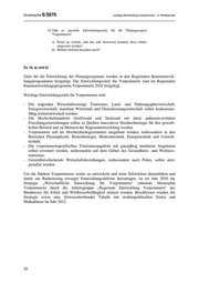 Drucksache 6/3870 Landtag Mecklenburg-Vorpommern - 6. Wahlperiode 19. Gibt es spezielle Entwicklungsziele für die Planungsregion Vorpommern? a) Wenn ja, welche sind das und inwieweit konnten diese bisher umgesetzt werden? b) Welche Defizite bestehen noch? Zu 19, a) und b) Ziele für die Entwicklung der Planungsregionen werden in den Regionalen Raumentwick- lungsprogrammen festgelegt. Die Entwicklungsziele für Vorpommern sind im Regionalen Raumentwicklungsprogramm Vorpommern 2010 festgelegt. Wichtige Entwicklungsziele für Vorpommern sind: - Die tragenden Wirtschaftszweige Tourismus, Land- und Nahrungsgüterwirtschaft, Energiewirtschaft, maritime Wirtschaft und Dienstleistungswirtschaft sollen konkurrenz- fähig weiterentwickelt werden. - Die Hochschulstandorte Greifswald und Stralsund mit ihren außeruniversitären Forschungseinrichtungen sollen zu Quellen innovativer Hochtechnologie für den gewerb- lichen Bereich und zu Motoren der Regionalentwicklung werden. - Vorpommern soll als Hochtechnologiestandort ausgebaut werden, insbesondere in den Bereichen Plasmaphysik, Biotechnologie, Medizintechnik, Energietechnik und Umwelt- technik. - Die vorpommernspezifischen Tourismusangebote mit ganzjährig nutzbaren Angeboten sollen erweitert werden, insbesondere auf dem Gebiet des Gesundheits- und Wellness- tourismus. - Grenzüberschreitende Wirtschaftsbeziehungen, insbesondere nach Polen, sollen aktiv gestaltet werden. Um die Stärken Vorpommerns weiter zu entwickeln und seine Schwächen abzumildern und damit zur Reduzierung etwaiger Entwicklungsdefizite beizutragen, ist im Jahr 2010 die Strategie „Wirtschaftliche Entwicklung für Vorpommern“ (ehemals Masterplan Vorpommern) durch die Arbeitsgruppe „Regionale Entwicklung Vorpommern“ des Bündnisses für Arbeit und Wettbewerbsfähigkeit initiiert worden. Beschlossen wurden die Strategie sowie eine (fortzuschreibende) Tabelle mit strukturpolitischen Zielen und Maßnahmen im Jahr 2012. 20