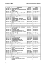 Drucksache 7/3981 Landtag Mecklenburg-Vorpommern - 7. Wahlperiode EU-Nr. Gebietsname Behörde Stand DE 1640-301 Ahrenshooper Holz StALU VP abgeschlossen DE 1640-302 Hohes Ufer zwischen Ahrenshoop und StALU VP abgeschlossen Wustrow DE 1641-301 Barther Stadtholz StALU VP Entwurf vorliegend DE 1643-301 Kleingewässerlandschaft bei Groß StALU VP abgeschlossen Kordshagen (Nordvorpommern) DE 1645-302 Kreidebruch bei Berglase StALU VP abgeschlossen DE 1646-302 Tilzower Wald StALU VP abgeschlossen DE 1647-303 Granitz BRA SOR abgeschlossen DE 1648-302 Küstenlandschaft Südostrügen BRA SOR abgeschlossen DE 1739-303 Ribnitzer Großes Moor und Neuhaus- StALU VP abgeschlossen Dierhäger Dünen DE 1739-304 Wälder und Moore der Rostocker StALU MM abgeschlossen Heide DE 1740-301 Wald bei Altheide mit Körkwitzer StALU MM abgeschlossen Bach DE 1743-301 Nordvorpommersche Waldlandschaft StALU VP abgeschlossen DE 1744-301 Krummenhagener See, Borgwallsee StALU VP abgeschlossen und Pütter See DE 1744-303 Försterhofer Heide StALU VP abgeschlossen DE 1747-301 Greifswalder Bodden, Teile des StALU VP abgeschlossen Strelasundes und Nordspitze Usedom DE 1749-301 Greifswalder Oie StALU VP abgeschlossen DE 1749-302 Darßer Schwelle StALU WM Entwurf vorliegend DE 1836-301 Riedensee StALU MM abgeschlossen DE 1836-302 Kühlung StALU MM abgeschlossen DE 1837-301 Conventer Niederung StALU MM abgeschlossen DE 1838-301 Stoltera bei Rostock StALU MM abgeschlossen DE 1840-301 Dänschenburger Moor und StALU VP abgeschlossen Teufelsmoor bei Gresenhorst DE 1840-302 Billenhäger Forst StALU MM abgeschlossen DE 1842-303 Tal der Blinden Trebel StALU VP Entwurf vorliegend DE 1845-301 Kleingewässerlandschaft bei StALU VP abgeschlossen Dömitzow DE 1846-302 Binnensalzstelle Greifswald, An der StALU VP abgeschlossen Bleiche DE 1846-303 Moore zwischen Greifswald und StALU VP abgeschlossen Miltzow DE 1849-301 Dünengebiet bei Trassenheide StALU VP abgeschlossen DE 1934-302 Wismarbucht StALU WM abgeschlossen DE 1934-303 Erweiterung Wismarbucht StALU WM abgeschlossen DE 1936-301 Westbrügger Holz StALU MM abgeschlossen DE 1936-302 Kleingewässerlandschaft südlich von StALU MM abgeschlossen Kröpelin DE 1937-301 Hütter Wohld und StALU MM abgeschlossen Kleingewässerlandschaft westlich Hanstorf 2