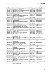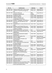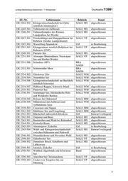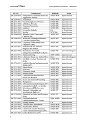 Landtag Mecklenburg-Vorpommern - 7. Wahlperiode Drucksache 7/3981 EU-Nr. Gebietsname Behörde Stand DE 2531-303 Schaaletal mit Zuflüssen und StALU WM abgeschlossen nahegelegenen Wäldern und Mooren DE 2531-304 Wald und Lindenallee bei Banzin StALU WM abgeschlossen DE 2533-301 Sude mit Zuflüssen StALU WM abgeschlossen DE 2535-302 Wälder in der Lewitz StALU WM abgeschlossen DE 2538-302 Alte Elde bei Kuppentin, Fahrenhorst StALU WM abgeschlossen und Bobziner Zuschlag DE 2539-301 Plauer See und Umgebung StALU WM abgeschlossen DE 2541-301 Kleingewässer- und Waldlandschaft StALU MS abgeschlossen Sietower Forst DE 2542-302 Müritz StALU MS abgeschlossen DE 2543-301 Seen, Moore und Wälder des Müritz- NPA Mür abgeschlossen Gebietes DE 2545-302 Burg Stargard, Altes Hospital LM in Bearbeitung DE 2545-303 Tollensesee mit Zuflüssen und StALU MS abgeschlossen umliegenden Wäldern DE 2546-301 Schlavenkensee StALU MS abgeschlossen DE 2547-302 Wald- und Kleingewässerlandschaft StALU MS abgeschlossen Hinrichshagen - Wrechen DE 2547-303 Jagenbruch und StALU MS abgeschlossen Kleingewässerlandschaft bei Hildebrandshagen (MV) DE 2547-374 Wald- und Kleingewässerlandschaft StALU MS Entwurf vorliegend Helpter Berge DE 2548-301 Daberkower Heide StALU MS abgeschlossen DE 2549-303 Schanzberge bei Brietzig StALU VP abgeschlossen DE 2549-305 Malchower Os (MV) StALU VP abgeschlossen DE 2550-301 Caselower Heide StALU VP abgeschlossen DE 2551-301 Großer Kutzowsee bei Bismark StALU VP abgeschlossen DE 2551-302 Randowhänge beim Burgwall StALU VP abgeschlossen Löcknitz DE 2551-373 Kiesbergwiesen bei Bergholz StALU VP abgeschlossen (südlich Löcknitz) DE 2551-374 Wald nordöstlich von Löcknitz StALU VP abgeschlossen DE 2630-301 Wiebendorfer Moor StALU WM abgeschlossen DE 2630-303 Elbtallandschaft und Sudeniederung BRA SchElb abgeschlossen bei Boizenburg DE 2632-301 Feldgehölze und Wälder im Raum StALU WM abgeschlossen Pritzier DE 2632-372 Die Rense BRA SchElb abgeschlossen DE 2634-301 Schloßpark Ludwigslust StALU WM abgeschlossen DE 2635-303 Ludwigsluster-Grabower Heide, StALU WM abgeschlossen Weißes Moor und Griemoor DE 2635-304 Neustädter See StALU WM abgeschlossen DE 2635-305 Ludwigslust, Eiskeller LM in Bearbeitung DE 2636-301 Sonnenberg bei Parchim StALU WM abgeschlossen 7