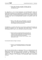 Drucksache 7/3507 Landtag Mecklenburg-Vorpommern - 7. Wahlperiode 2. Welche digitale Infrastruktur und digitale Ausstattung erachtet die Landesregierung als zwingend erforderlich in den Hochschulen und Universitäten des Landes? Im Allgemeinen ist wie bei allen Einrichtungen der Beschaffungsbedarf anhand der erforderlichen Nutzungen für die Kernaufgaben in Forschung und Lehre zu bestimmen. Digitale Infrastruktur und Geräteausstattung auf dem modernsten Stand ist daher ein Muss bei allen Neubau-, Umbau- und Erstausstattungsmaßnahmen und ist je nach Fachgebiet spezifisch zu planen. Dabei sind die Ausstattungsstandards quantitativ und qualitativ jeweils sehr verschieden. 3. Mittel in welcher Höhe hat die Landesregierung in den letzten zehn Jahren in die digitale Infrastruktur und digitale Ausstattung der Hochschulen und Universitäten investiert (bitte einzelne Maßnahmen, Ziel der Maßnahme und Finanzierung darstellen)? Da Maßnahmen zur digitalen Infrastruktur und Ausstattung grundlegende Bestandteile der regelhaften Beschaffung sowie der Bauvorhaben sind, jedoch nicht in gesonderten Kostengruppen geführt werden, ist eine Auflistung im Einzelnen nicht möglich. 4. Welche Investitionen in die digitale Infrastruktur und die digitale Aus- stattung sind in den kommenden Jahren in die Hochschulen und Uni- versitäten des Landes notwendig (bitte Art der Investition und Kosten für jede einzelne Hochschule und Universität angeben)? Inwieweit sind für diese Investitionen bereits finanzielle Vorkeh- rungen getroffen worden? Es wird auf die Antwort zu Frage 3 verwiesen. 5. Welche Fort- und Weiterbildungsmöglichkeiten im Bereich Digitali- sierung bestehen in Mecklenburg-Vorpommern für Hochschullehr- kräfte? Die Universität Greifswald führt seit Jahresbeginn 2019 ein vom Bundesministerium für Bildung und Forschung finanziertes (Teil-)Projekt „interStudies_2: Digitalisierung in der Hochschullehre“ durch, das nachfrageorientiert Beratungen und Weiterbildungen zu sämtlichen Fragen der mediendidaktischen Einbindung von digitalen Lehr-Lern-Formaten anbietet und Lehrende in der Konzeption und Durchführung digitaler Lehrszenarien unterstützt. 2