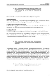 Drucksache 6/3925 Landtag Mecklenburg-Vorpommern - 6. Wahlperiode Landkreis Ludwigslust-Parchim In den Einrichtungen des Landkreises Ludwigslust-Parchim besteht keine Möglichkeit der Nutzung eines Internetzuganges. Auch Rechner stehen nicht zur Verfügung. Landkreis Mecklenburgische Seenplatte In den Gemeinschaftsunterkünften Friedland und Neubrandenburg gibt es vonseiten der Betreiber keinen frei zugänglichen Internetanschluss für alle. Da im Markscheiderweg in Neubrandenburg aber auch ein Block der Gemeinschaftsunterkunft aus separaten Wohnungen besteht, kann in diesen Aufgängen von den Bewohnerinnen und Bewohnern privat ein Internetzugang beantragt werden, was viele auch nutzen. Viele der Asylbewerberinnen und Asylbewerber bedienen sich darüber hinaus mobiler Lösungen. Landkreis Rostock In den Gemeinschaftsunterkünften gibt es keinen frei zugänglichen Internetzugang. Viele der Asylbewerberinnen und Asylbewerber bedienen sich aber mobiler Lösungen. Landkreis Vorpommern-Greifswald In einigen Einrichtungen stehen Computer zur Verfügung, jedoch ohne Internetzugang. Die Landkreise Nordwestmecklenburg und Vorpommern-Rügen haben zu der Anfrage nicht zugearbeitet. 2. Wird der Internetzugang in den Unterkünften vonseiten der Landesregierung gefördert, wenn ja, in welchem Umfang, wenn nicht, warum nicht? Die Landesregierung fördert Internetzugänge in Asylbewerberunterkünften nicht, da nicht ausgeschlossen werden kann, dass die Bewohnerinnen und Bewohner der Unterkünfte kostenpflichtige Internetseiten nutzen würden. Eine dauerhaft wirksame inhaltliche Beschränkung der Zugänge ist nicht möglich, sodass unkontrolliert Kosten entstehen könnten. Darüber hinaus ist ersichtlich, dass sich Asylbewerberinnen und Asylbewerber durch mobile Lösungen und das Abschließen kostengünstiger Verträge selbstständig Zugang zum Internet verschaffen. Eine Förderung von Internetzugängen durch die Landesregierung ist insofern nicht erforderlich. Auf die Antwort zu Frage 1 wird verwiesen. 2
