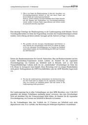 Landtag Mecklenburg-Vorpommern - 6. Wahlperiode Drucksache 6/2719 2. Gibt es ein Papier der Bundesregierung, in dem der Ausschluss von Zwischenlagerstandorten definiert ist und sind dieses Papier und dessen Inhalte der Landesregierung bekannt? Wenn ja, welche zentralen Aussagen beinhaltet dieses Papier hinsicht- lich der Eignung und Nichteignung von Zwischenlagerstandorten, welche werden in diesem Papier ausgeschlossen und welche werden als potenziell umsetzbar angesehen? Eine derartige Unterlage der Bundesregierung ist der Landesregierung nicht bekannt. Soweit Vorschlagsübersichten im Sinne der Fragestellung zwischen den Gesprächsbeteiligten erörtert wurden, wird in Bezug auf deren zentrale Aussagen auf die Antwort zu Frage 1 verwiesen. 3. Wie gestalten sich die Aussagen, Einschätzungen und Kriterien zu einer Nutzung des Zwischenlagers Nord (ZLN) in Lubmin als Stand- ort für die sogenannte Zwischenlagerung von Castoren aus Sellafield seitens Bund, Ländern, der Geschäftsführung des EWN und Vertretern der AKW-Betreiber? Seitens des Bundesministeriums für Umwelt, Naturschutz, Bau und Reaktorsicherheit und des Landes Mecklenburg-Vorpommern kommt Lubmin als Standort für die sogenannte Zwischenlagerung von Castoren aus Sellafield nicht in Betracht, weil es sich beim Transportbehälterlager Lubmin nicht um ein „standortnahes“ Zwischenlager im Sinne des § 9a Absatz 2a Atomgesetz (neu) handelt. Diese Bewertung wird von einigen Bundesländern nicht geteilt. Stellungnahmen der EWN-Geschäftsführer oder der AKW-Betreiber liegen nicht vor. 4. Was hat die Landesregierung unternommen, um durchzusetzen, dass das ZLN Nord nicht als Standort für die sogenannte Zwischenlage- rung von Castoren aus Sellafield genutzt wird und warum ist die Landesregierung bisher gescheitert? Die Landesregierung hat in allen Verhandlungen seit dem MPK-Beschluss vom 13.06.2013 gegenüber den übrigen Teilnehmern nachhaltig darauf verwiesen, dass dem Zwischenlager Nord auf absehbare Zeit die Voraussetzungen dafür fehlen, als Standort für die sogenannte Zwischenlagerung von Castoren aus Sellafield in Betracht zu kommen. Da die Verhandlungen über den Verbleib der 21 Castoren aus Sellafield noch nicht abgeschlossen sind, ist es verfrüht, eine Bewertung der bisherigen Ergebnisse vorzunehmen. 3