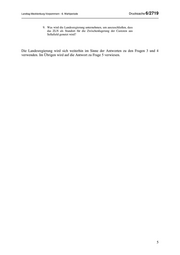 Landtag Mecklenburg-Vorpommern - 6. Wahlperiode Drucksache 6/2719 9. Was wird die Landesregierung unternehmen, um auszuschließen, dass das ZLN als Standort für die Zwischenlagerung der Castoren aus Sellafield genutzt wird? Die Landesregierung wird sich weiterhin im Sinne der Antworten zu den Fragen 3 und 4 verwenden. Im Übrigen wird auf die Antwort zu Frage 5 verwiesen. 5